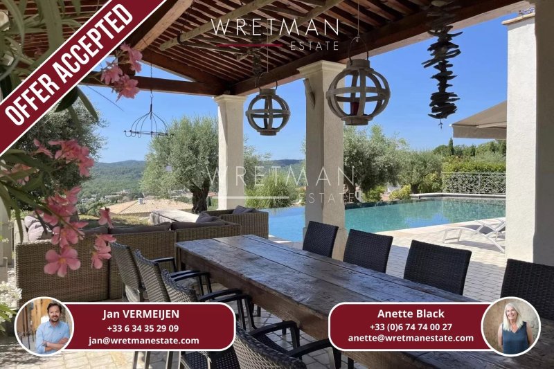 Très charmante villa de qualité d'environ 180 m² à seulement 15min à pied du village de Montauroux avec une vue fantastique et au calme absolu dans un secteur résitentiel.