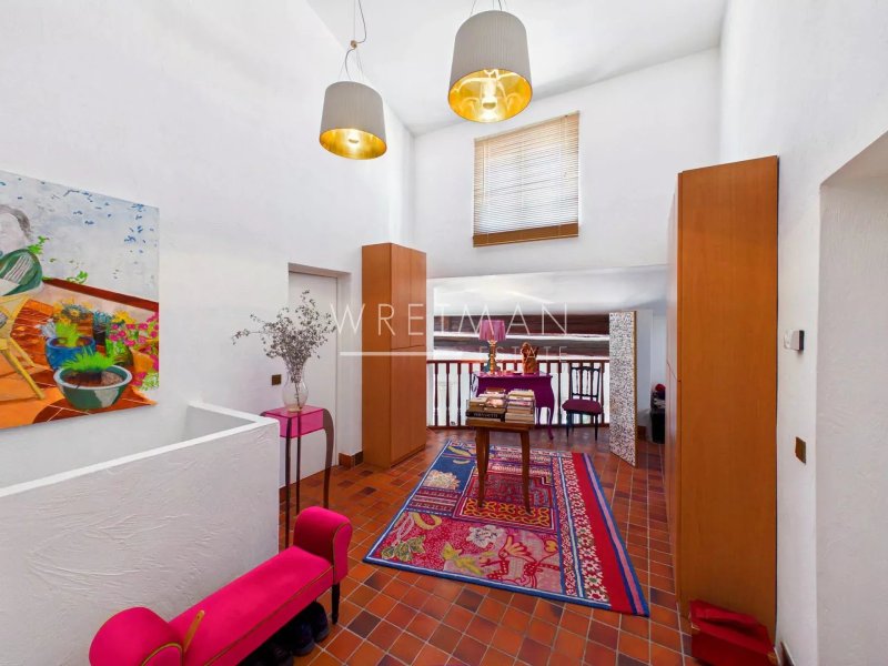 Le rez-de-chaussée vous offre un vaste et lumineux séjour de 50 m² avec plafond cathédrale, cheminée et espace salle à manger, donnant sur une grande terrasse. Vous trouverez également une cuisine équipée avec accès à la terrasse, ainsi qu'une chambre avec salle de bain et dressing.