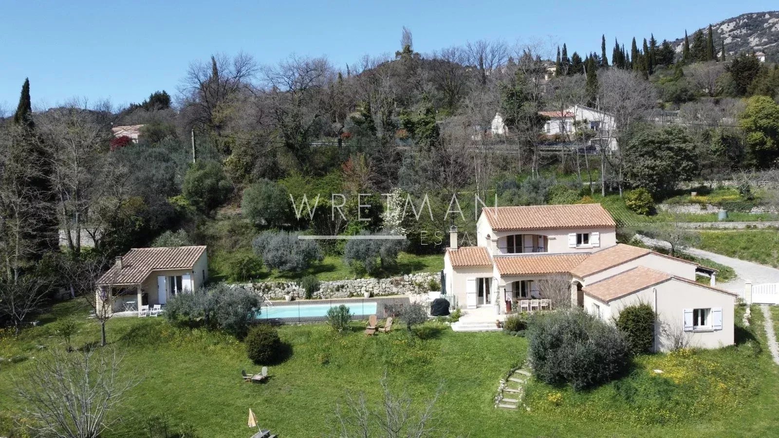 Idéalement située à pied du village dans un environnement recherché, cette charmante propriété bénéficie de belles vues dégagées sur les collines et jusqu’au village de Claviers.