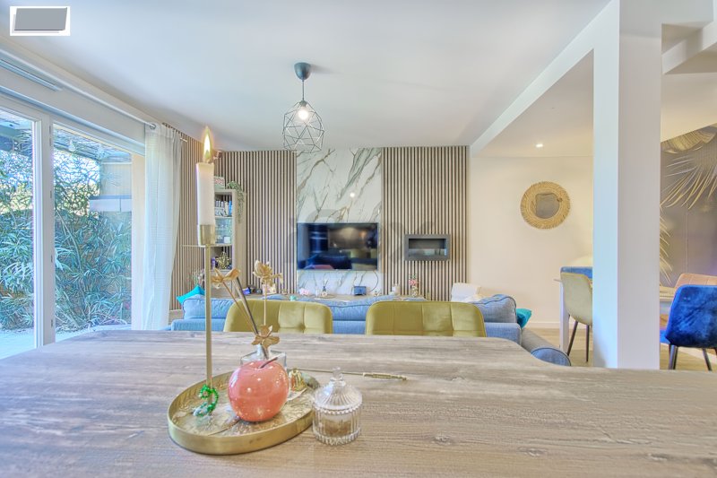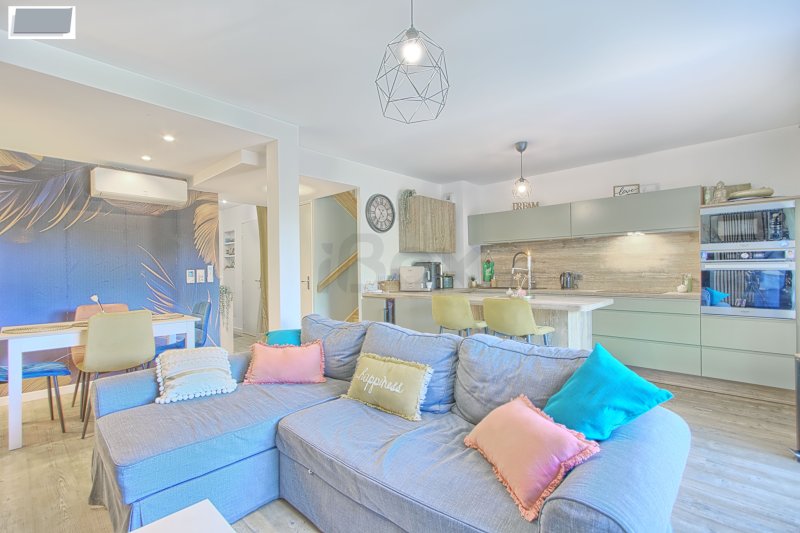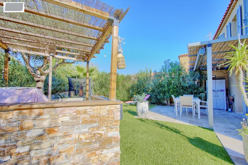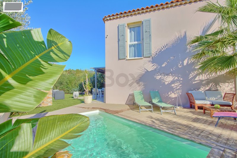 Ollioules : Maison de 2023 amménagée avec beaucoup de goût. Salon, Séjour, cuisine ouverte toute équipée, placard sous escaliers, salle d'eau avec WC. A l'étage : 3 chambres, wc séparés et grande salle de bains. Petit garage avec espace buanderie et stockage, jardin paysagé, cabanon de jardin pour rangement avec jolie piscine Maison récente avec climatisation, chauffe eau thermodynamique, volets electriques.