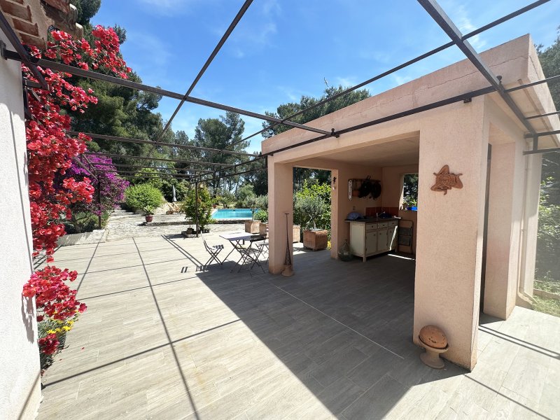 Coup de Coeur : Entre Ollioules et Toulon, dans un environnement calme et verdoyant, découvrez cette magnifique maison mitoyenne T6 de 133 m2, nichée sur un vaste terrain de 3480m2 au sommet d'une colline. Un vrai havre de paix... à proximité immédiate des principaux axes routiers. Cette propriété aux prestations soignées vous séduira par sa piscine traditionnelle de 11m x 5m, sa grande terrasse exposée plein sud avec cuisine d'été, son garage de 25 m2 ainsi qu'une cave. Le rez-de-chaussée se compose d'une cuisine de 22m2 avec salon attenant, de deux chambres, une salle de bain et toilettes séparées. A l'étage, on retrouve 3 chambres dont une de 15 m2, une salle d'eau et toilettes séparées. Toutes les pièces sont climatisées. Les menuiseries sont en double vitrage. Le DPE est en B. Venez visitez cette maison qui ne vous laissera pas indifférent. Un bien rare sur le secteur.