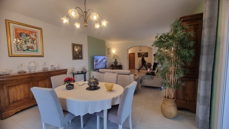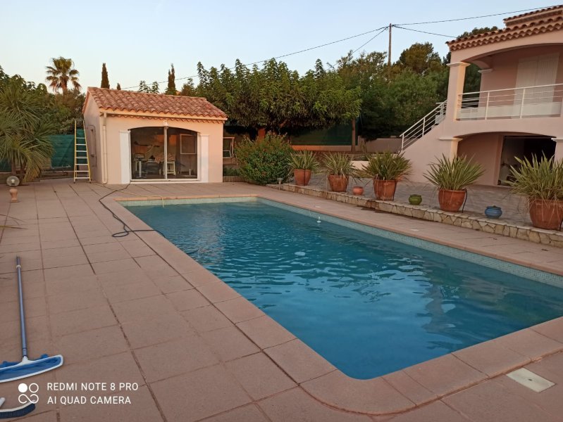 OLLIOULES, dans le secteur du Gros Cerveau, vue mer dominante pour cette villa offrant une surface habitable plus de 205 m2 répartie du 2 niveaux de vie, sur un vaste garage de plus de 102 m2, avec piscine et poolhouse, sur une parcelle d'environ 2 117 m2. Vous serez sous le charme d'un joli panorama sur la mer, de la baie de Toulon aux Embiers, et apprécierez les volumes généreux de cette villa comprenant au 1er étage un hall d'entrée avec placards, une cuisine aménagée et équipée, un séjour d'environ 37 m2 donnant sur une terrasse exposée Sud-Ouest, et un salon d'environ 37 m2. Sur ce niveau, deux chambres, une salle d'eau avec douche et baignoire, un wc, un espace lingerie. Au 2ème étage, deux chambres, une sde avec wc. Une petite remise au goût du jour lui rendra son éclat. Attardons nous un peu sur le niveau garage, composé d'un grand espace pour les voitures, une zone technique pour la pompe à chaleur installée en 2016, et trois grandes pièces qui sauront forcément répondre aux besoins pratiques de votre quotidien, que vous ayez envie d'avoir une salle de sport à domicile ou un espace télétravail au bord de la piscine. Côté extérieur, une grande piscine avec vue mer, complétée par un pool house qui vous permettra de profiter de vos moments de détente. Possiblité de stationner plusieurs véhicules sur la parcelle, arborée. Villa construite en 1993 et ayant fait l'objet d'une attention particulière de ses propriétaires au fil des années. A quelques minutes du centre ville d'Ollioules, des plages de Sanary, Six Fours et Bandol, du centre commercial de Chateauvallon. Les informations sur les risques auxquels est exposé ce bien sont disponibles sur le site Géorisques : www.georisques.gouv.fr