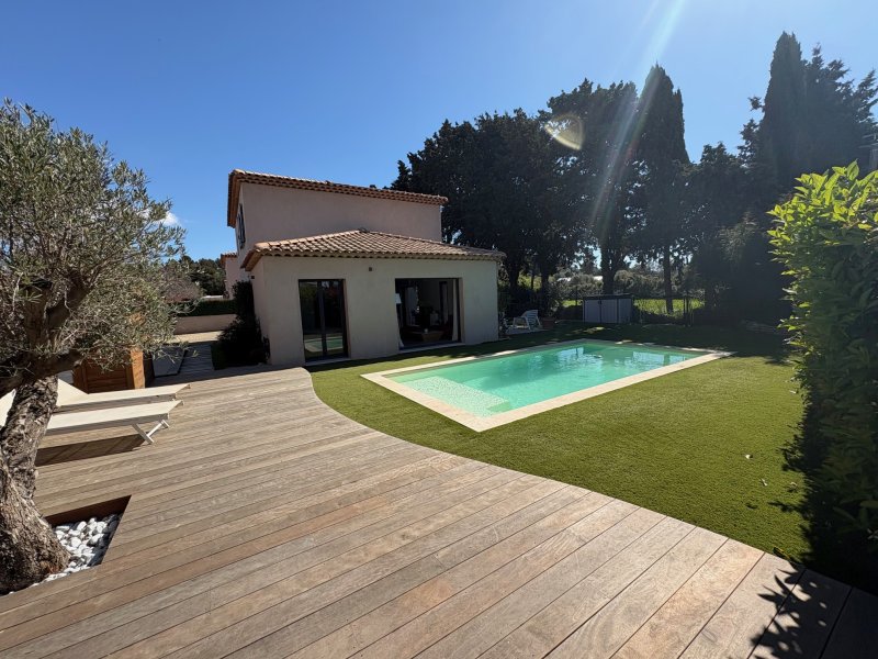 - EXCLUSIVEMENT CHEZ WEBER IMMOBILIER - Située dans un environnement recherché à proximité des écoles, du village et des commodités. Magnifique villa récente (2021) 'clé en main' encore sous garantie décennale alliant confort moderne, fonctionnalité et qualité de vie. Edifiée sur un terrain plat de 600 m2, vous serez séduit par ses prestations actuelles et ses espaces exterieurs. Elle se compose d'une entrée avec rangements, d'une belle pièce de vie de + 50 m2 avec cuisine ouverte parfaitement équipée offrant un espace convival et chaleureux et d'une arrière cuisine - buanderie. Baies vitrées à galandage s'ouvant sur terrasse à l'abri des regards. Une suite parentale de plain pied donnant sur la piscine, grand dressing et salle d'eau. A l'étage 3 chambres avec dressing, un espace bureau ou chambre d'amis et salle de bains/wc. Pour profiter de l'exterieur, magnifique piscine au sel, terrasse en bois exotique avec espace détente et terrain de pétanque. Stationnement aisé sur la parcelle avec garage pour stockage. Prestations actuelles et de qualité (climatisation gainable, volets roulants, chauffe-eau thermodynamique ... )