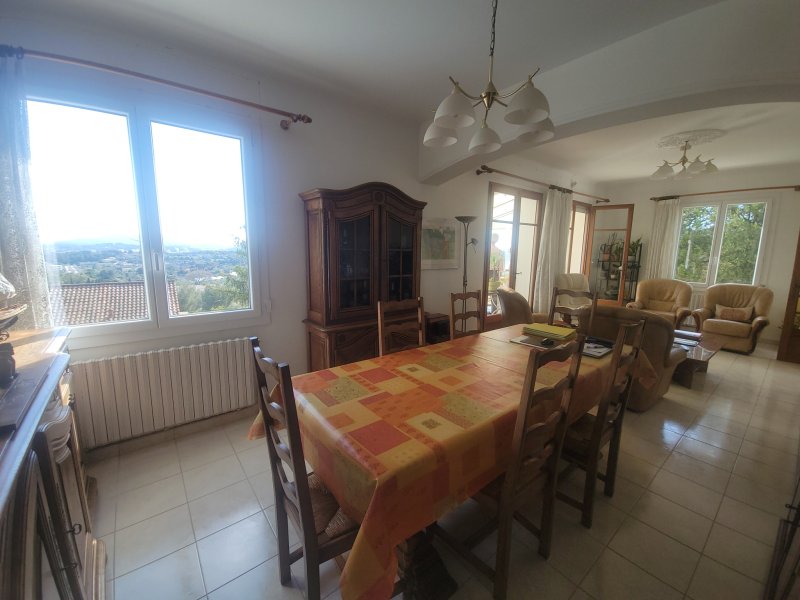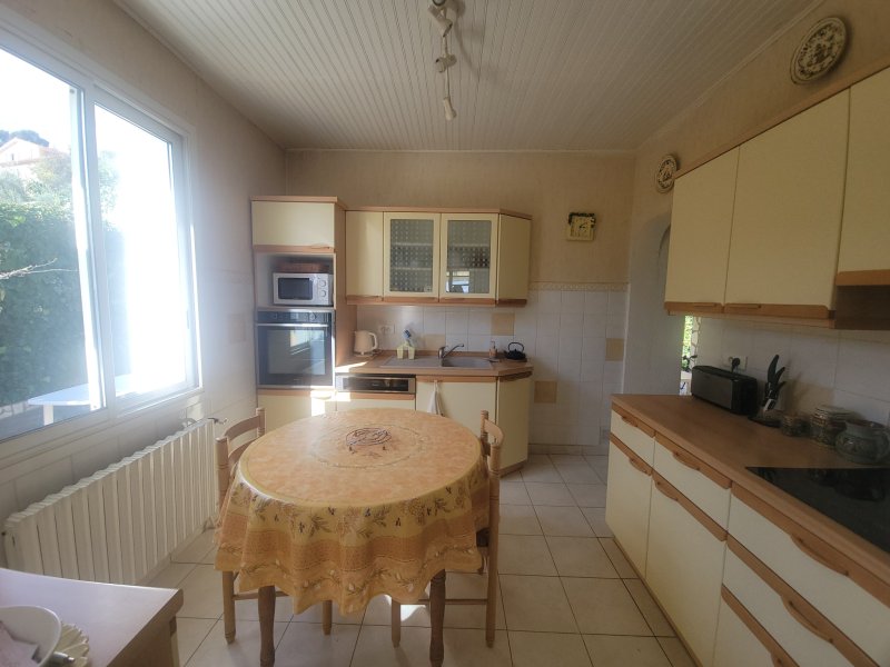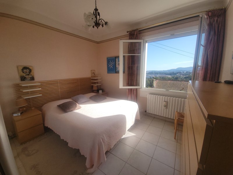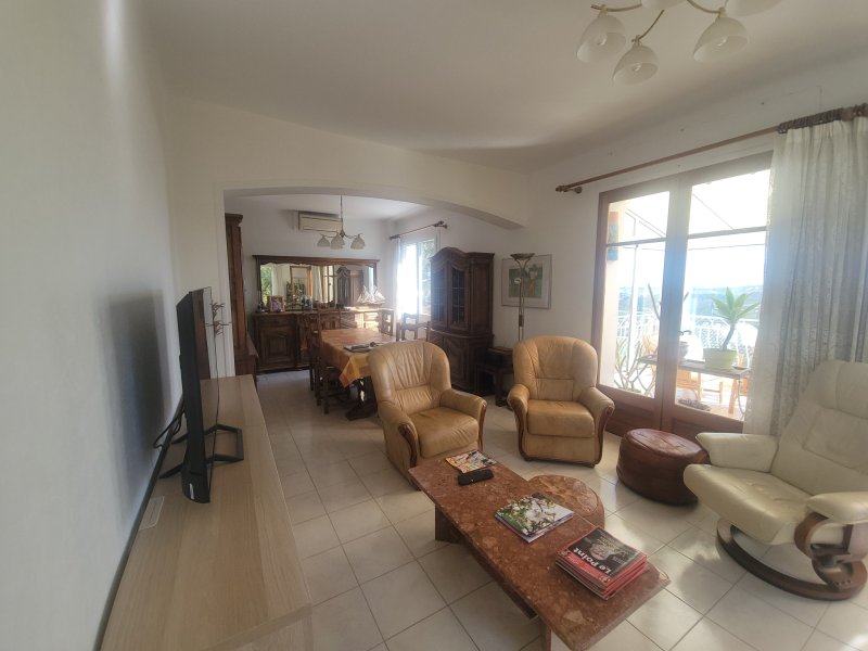 ***EXCLUSIVITE WEBER IMMOBILIER*** Venez découvrir cette belle villa familiale de 125 m2, nichée sur un terrain arboré de 1100 m2 en restanques, soigneusement entretenu avec vue mer et piscine de 8x4 mètres, traitée au sel avec pompe à chaleur et escalier balnéo. Au rez de chaussée, une dépendance de 33 m2 composée d'une cuisine, d'une chambre, d'une salle d'eau avec wc et d'un cellier, s'ouvrant directement sur la terrasse de la piscine. A l'étage, un séjour-salon et une véranda exposés plein Sud avec vue panoramique sur la mer, 3 chambres, salle d'eau et wc. Cuisine et arrière cuisine avec accès à la terrasse couverte, barbecue et cabanon de jardin idéal pour le stockage. Garage avec porte automatique.
