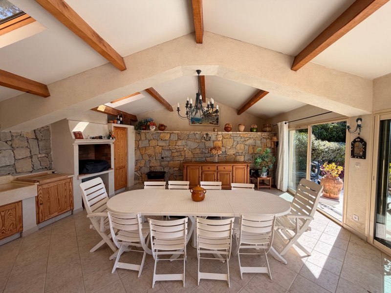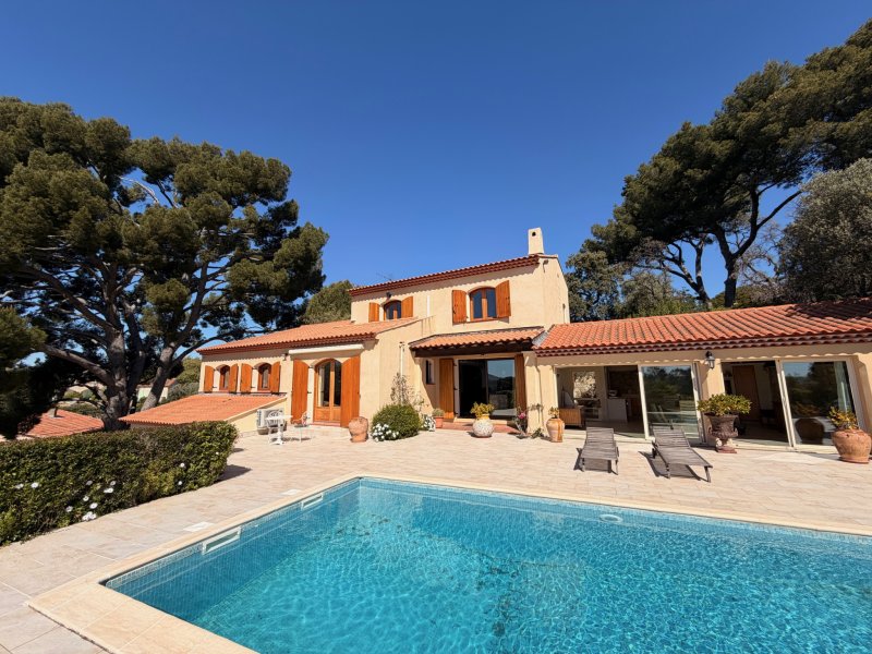 **Exclusivité Weber immobilier** Découvrez cette superbe villa avec aperçu mer, idéalement située à Ollioules, proche du centre-village. Cette propriété typiquement provençale, séduit par son cachet, ses volumes généreux et ses prestations de qualité. Le vaste salon s'ouvre sur une grande terrasse, parfaite pour profiter des beaux jours en famille ou entre amis. La maison dispose de quatre chambres spacieuses, idéales pour accueillir toute la famille ou recevoir des invités. À l'extérieur, vous apprécierez la cuisine d'été de 38 m2 paraitement équipée, ouverte sur la piscine tradionnelle de 9m x 4m. Un double garage avec cave et mezzanine complète ce bien, offrant un espace de stationnement et de rangement appréciable. Cette maison est une opportunité unique de vivre dans un environnement privilégié, alliant confort, tranquillité et proximité des commodités.