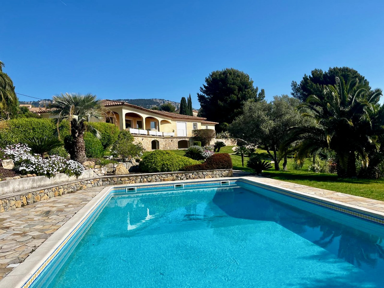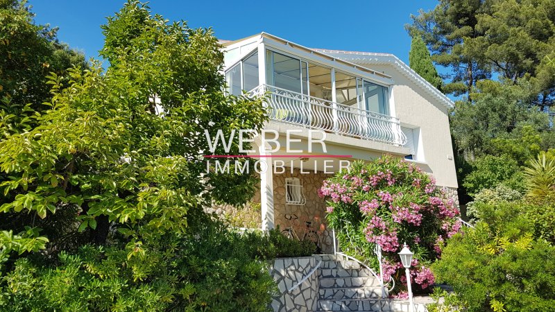 ***EXCLUSIVITE WEBER IMMOBILIER*** Venez découvrir cette belle villa familiale de 125 m2, nichée sur un terrain arboré de 1100 m2 en restanques, soigneusement entretenu avec vue mer et piscine de 8x4 mètres, traitée au sel avec pompe à chaleur et escalier balnéo. Au rez de chaussée, une dépendance de 33 m2 composée d'une cuisine, d'une chambre, d'une salle d'eau avec wc et d'un cellier, s'ouvrant directement sur la terrasse de la piscine. A l'étage, un séjour-salon et une véranda exposés plein Sud avec vue panoramique sur la mer, 3 chambres, salle d'eau et wc. Cuisine et arrière cuisine avec accès à la terrasse couverte, barbecue et cabanon de jardin idéal pour le stockage. Garage avec porte automatique.