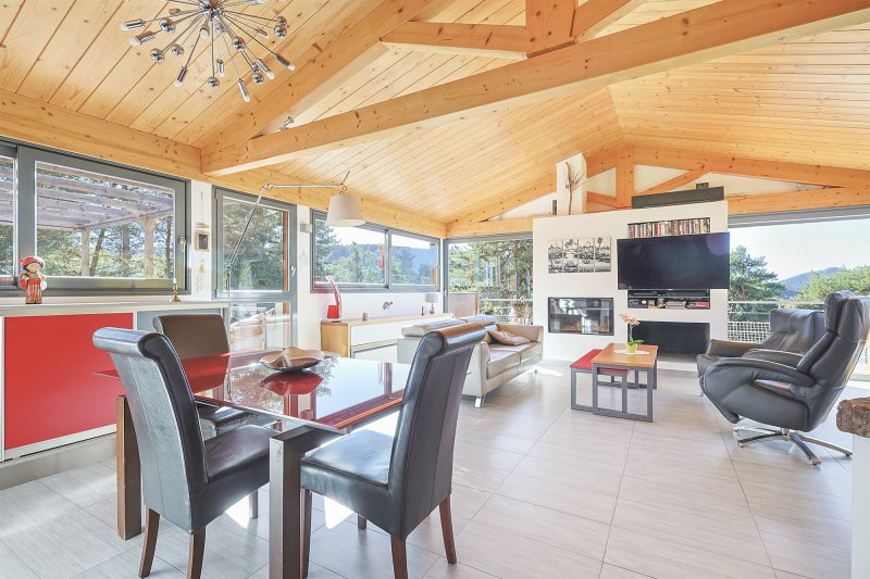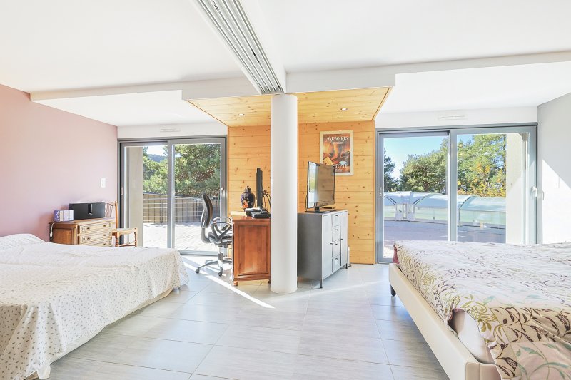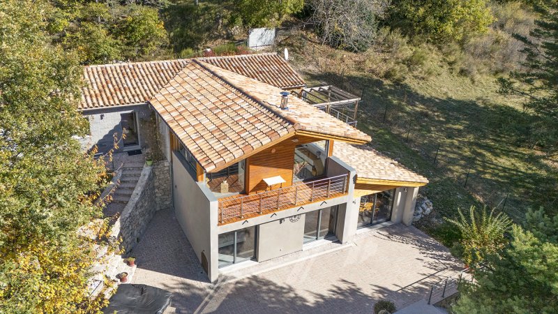 ******************** Visite virtuelle sur demande ******************** Peyroules (04120), Moyenne montagne (1175 m d'altitude), JCG Immobilier est ravi de vous présenter cette villa ossature bois construite en 2010 d'une superficie de 198 m2 habitables + 55 m2 d'annexes. Elle est orientée plein sud sur un beau terrain en pente dominante de 3035 m2 dans un écrin de nature. Elle se situe à 10 km du Var et des Alpes Maritimes, et à 70 km du littoral méditerrannéen. Le terrain de 3035 m2 est clôturé sur environ 1800 m2 autour de la maison, il est agrémenté d'une pinède attenante d'environ 1235 m2 non clôturée. Cette villa de famille du troisième millénaire a été conçue pour proposer un mode de vie très confortable à chaque saison. Tous les aspects ont été étudiés dans les moindres détails que ce soit en matière d'organisation, de désignation et d'équipements avec une qualité d'execution irréprochable. La villa est aménagée comme suit : Rez-de-Chaussée : vie de plain-pied possible sur un plateau de 108 m2 avec une entrée de 8 m2, un bureau de 12 m2, buanderie de 5,62 m2, cuisine ouverte sur le salon/séjour de 47 m2 qui donne sur une terrasse suspendue, suite parentale de 26,53 m2 avec salle de bains, dressing et WC indépendant. Rez-de-Jardin : 4 chambres de15/15/13 et 17m2, salle d'eau de 5,5 m2 et hammam. Extérieur : Piscine de 35 m2 équipée d'une couverte amovible, revêtement PVC armé, d'une contenance de 50 m3, chauffée via une pompe à chaleur + panneaux de chauffage solaire, électrolyseur (piscine au sel), régulateur de PH et Jacuzzi 6 places. Annexes : Cabanon avec cuisine d'été de 17 m2, pergola de 15 m2, abris de jardin de 12 m2. Stationnements : 1 garage avec accès direct à la maison et un 2nd garage accolé à la maison, borne de recharche pour véhicule électrique de 22 KW et délesteur associé (power boost). Parking pour 2 voitures devant les garages équipé d'un système de sol chauffant qui empêche la neige de se fixer sur les pavés. Prestations : chauffage par pompe à chaleur 16,3 KW, installée le 04/10/2021 et garantie jusqu'au 04/10/2028, raccordée au réseau de chauffage par le sol sur l'intégralité de la maison, y compris dans le garage, cheminée avec Insert, double caisson de toiture, double-vitrage alu intégral, système domotique pour l'ouverture/fermeture des volets roulants par zone ou global, visiophone sur chaque niveau, système de récupération des eaux de pluie (3 m3) utilisé pour les 3 WC, le lave linge et l'eau de puisage, aspiration centralisée distribuant 7 bouches d'extraction avec tuyau de 6 m, réseau d'irrigation indépendant du réseau d'eau de ville comprenant 9 robinets de puisage bien répartis dans le jardin, hammam 6 places disposant d'un générateur de vapeur et de son équipement électronique de pilotage, d'un éclairage d'ambiance et d'une extraction vapeur, TV par satellite avec 7 prises desservant chaque pièce. Performances énergétique et environnementale : DPE = B ! , GES = A ! Notre avis : Nous avons découvert cette maison exceptionnelle tant au niveau de son environnement, dont l'architecture s'y intègre à merveille, que de ses prestations haut de gamme assurant un confort de vie hors du commun. Elle a obtenu toutes les autorisations d'urbanisme (permis de construire et non-contestation de la conformité). Cette maison se prête parfaitement aux réunions de famille, pour y vivre paisiblement à l'année ou en profiter pour se ressourcer en vacances. Elle est idéalement située à 1h15 de la mer méditérranée et de la station de ski de la Foux D'Allos ... sans oublier la qualité irréprochable et les excellentes performances énergétique et environnementale si importante de nos jours ! Montant estimé des dépenses annuelles d'énergie pour un usage standard : entre 1503 EUR et 2033 EUR par an. Prix moyens des énergies indexés au 01/01/2023. Les informations sur les risques auxquels ce bien est exposé sont disponibles sur le site Géorisques : www.georisques.gouv.fr Lionel Lancry Carte de collaborateur noADC 8306 2025 0000 000 624 Enregistré au registre du commerce no 914 765 458 RSAC de Toulon No de police d'assurance Sérénis Assurances Police No VD 7.000.002/005808/ACI23605