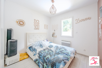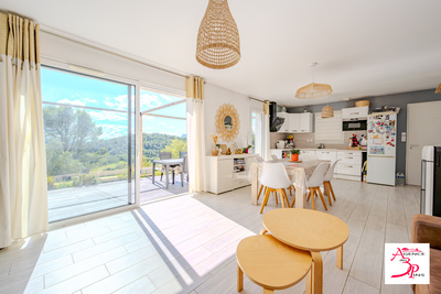 Elle offre une entrée donnant sur une pièce de vie lumineuse avec cuisine ouverte et un accès direct à une grande terrasse.