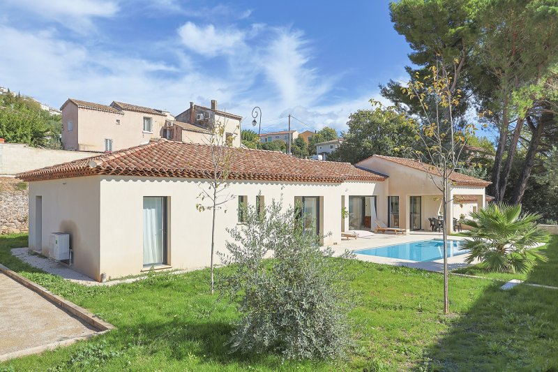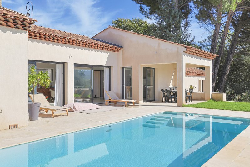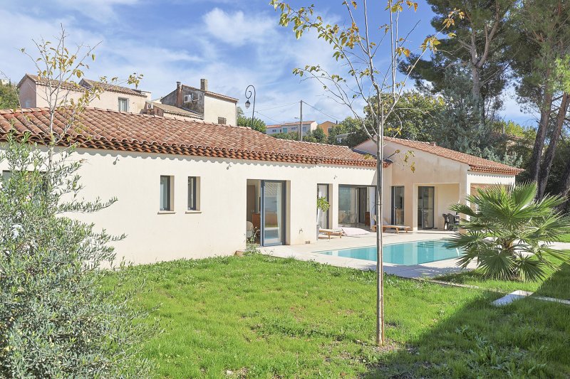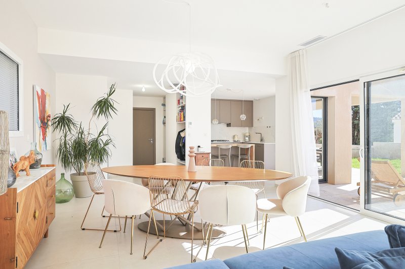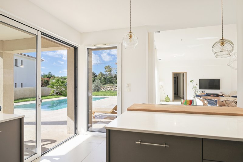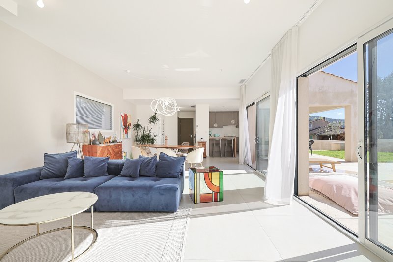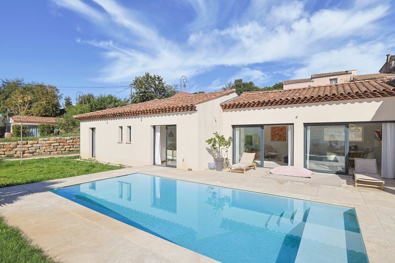 EXCLUSIVITÉ JCG IMMO : sur la commune de Pierrefeu-du-Var, retrouvez cette villa indépendante contemporaine, construite en 2021, d'une surface de 128 m2 habitables T5 avec garage sur un terrain de 890 m2. À l'intérieur : une entrée avec placard et WC, s'ouvrant sur une pièce de vie lumineuse avec cuisine équipée pour une surface totale de 57 m2, l'ensemble bénéficiant de baies vitrées donnant sur une terrasse avec piscine. Puis, un dégagement desservant une première chambre, véritable suite parentale de 21m2 avec dressing, salle d'eau et accès extérieur. Mais aussi, trois autres chambres de 11m2 chacune se partageant une salle de bains et un WC indépendant. À l'extérieur : un terrain plat de 890 m2 avec piscine traditionnelle 3,5/7,5 (traitement sel), terrasse et terrasse couverte, communiquant avec la maison un garage de 29m2 avec espace buanderie, un terrain de pétanque, du stationnement et l'arrosage automatique, relié au canal des arrosant. Prestations haut de gamme : DPE A/A, climatisation gainable réversible, conduit cheminée existant, double vitrage aluminium, volets roulants électriques, eau de ville, tout à l'égout. Notre avis : une maison récente, bâtie avec des matériaux de qualité, pensée et aménagée avec gout. Taxe foncière 2220EUR / Visite virtuelle disponible sur demande. Contactez JCG Immobilier et soyez les premiers à visiter ! SCIARRINO Maxime Carte de collaborateur noADC 8306 2020 000 243 610 Immatriculé au RCS sous le no889 308 425 No de police d'assurance 7953190/S17046246 (SPVIE)