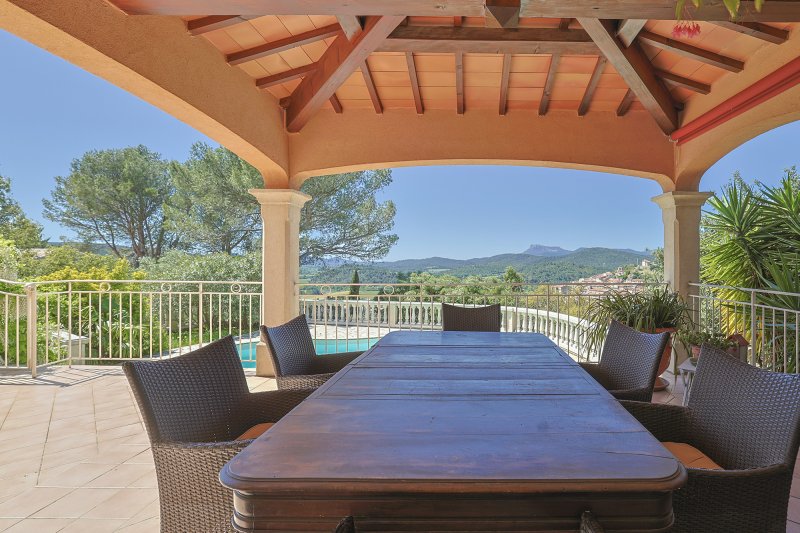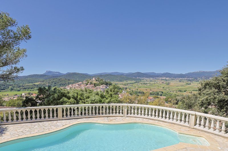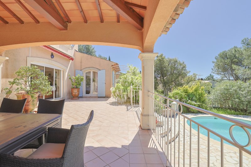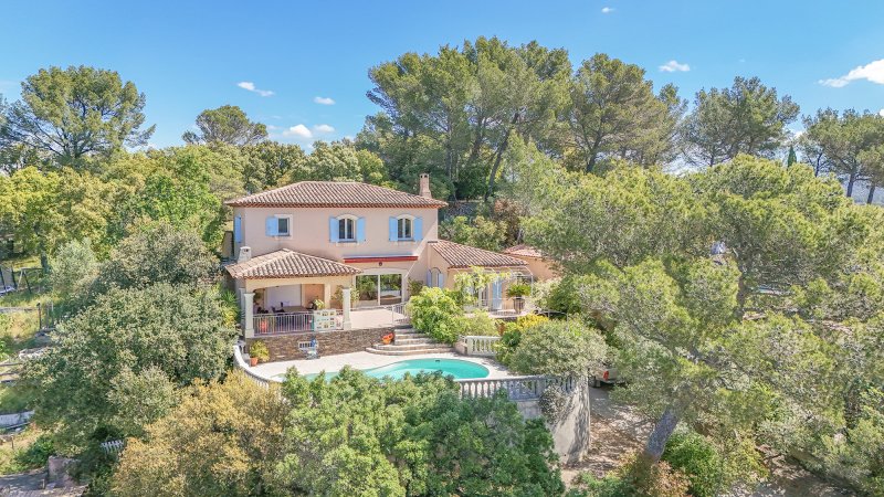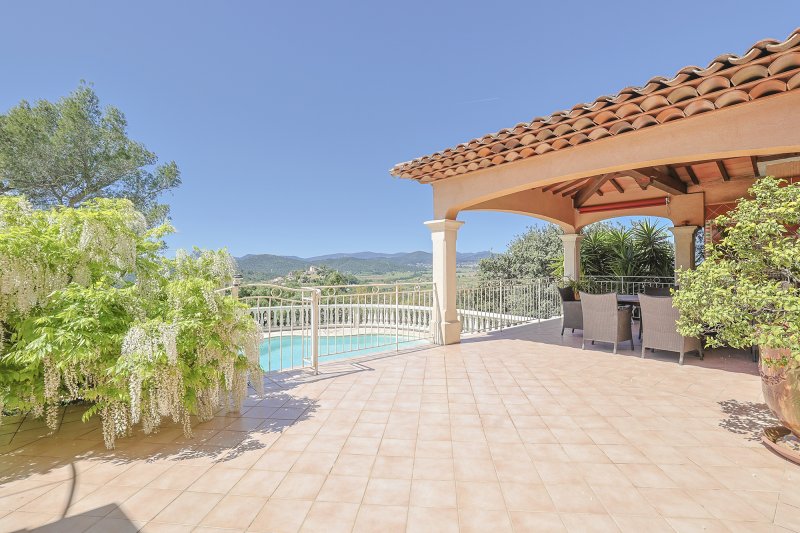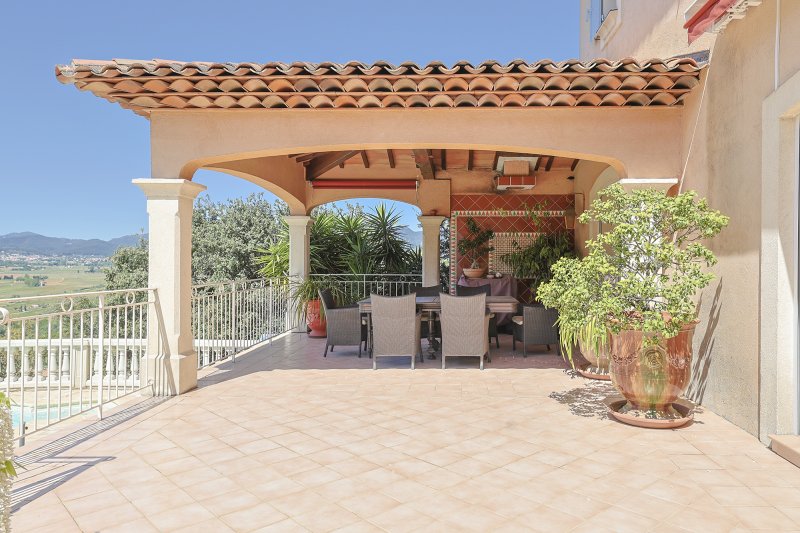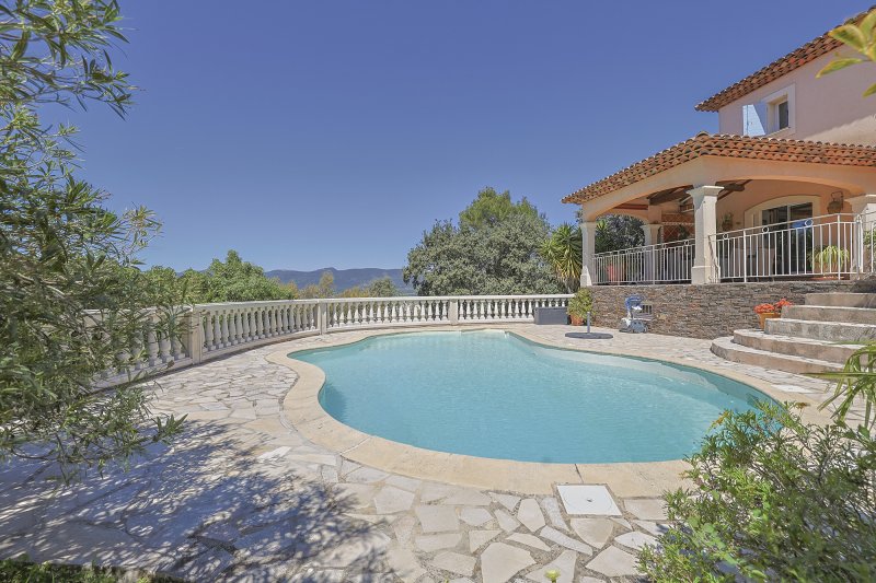 PIERREFEU DU VAR 20MNS DE HYERES, 15MNS DE TOULON, VILLA OFFRANT UNE TRES BELLE VUE DEGAGEE ET A LA FOIS PROCHE DE TOUTES LES COMMODITES, 194m2 habitables, elle a été batie entièrement en traditionnel. Elle se compose d'une vaste entrée ouvrant sur la pièce de vie avec une trés belle cheminée fournissant à la fois un mode de chauffage complémentaire et un salon des plus réconfortant, salle à manger cuisine donnant sur la terrasse sud couverte ouvrant sur la vue et le coin piscine , suite parentale sur ce niveau avec dressing et salle d'eau, coin bureau, et à l'étage 3 autres chambres, salle d'eau et salle de bain, rangements, garage double 39m2 plus sous sol avec chaufferie, vous serez séduit par cette propriété sans aucun vis a vis, et au calme!