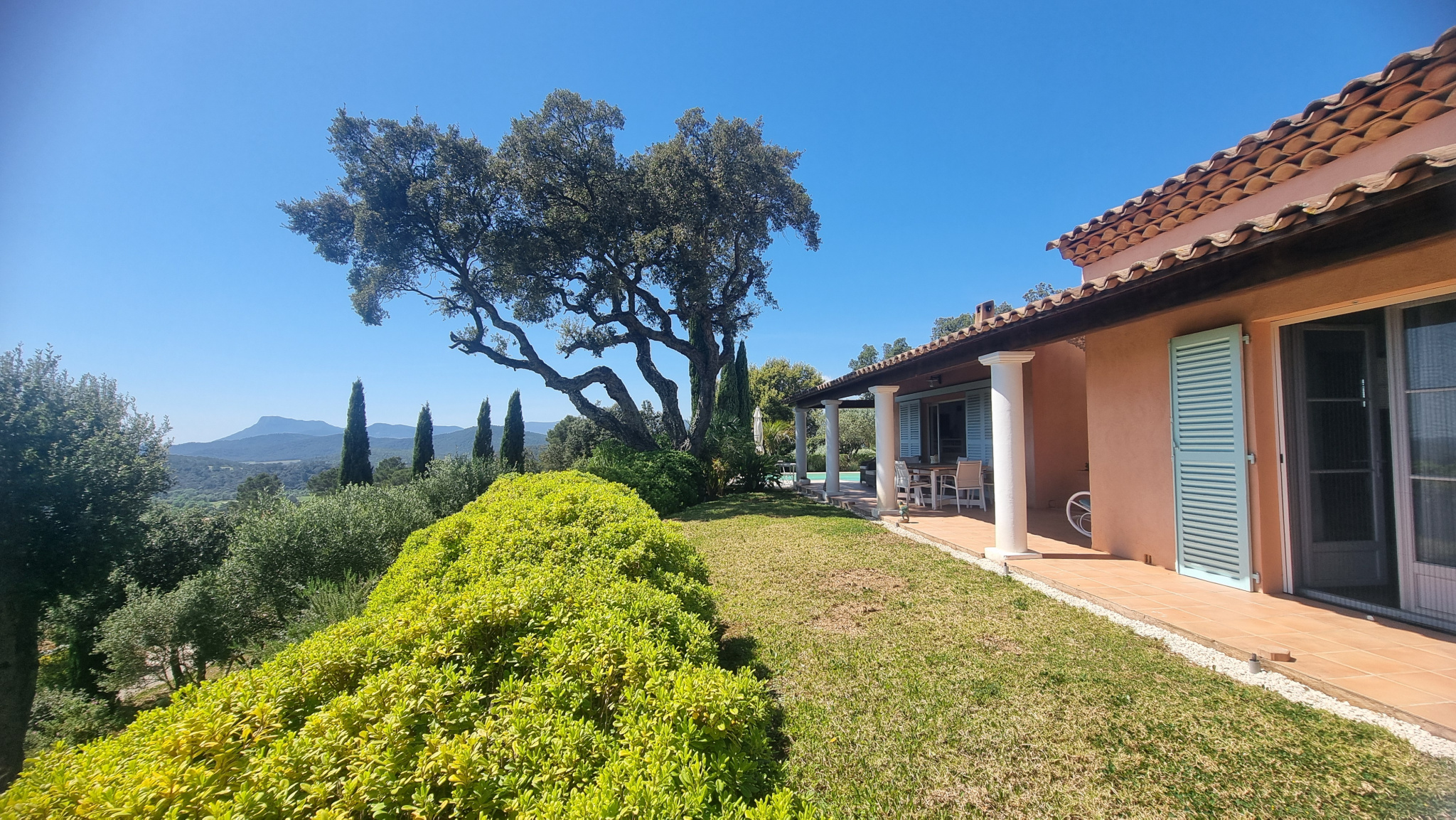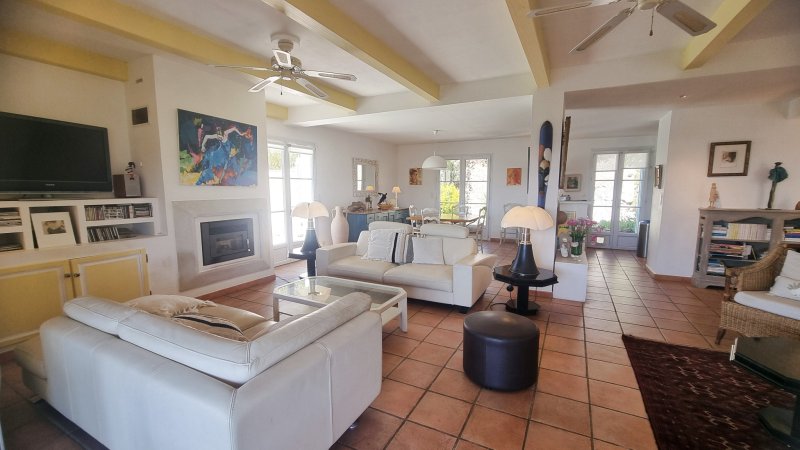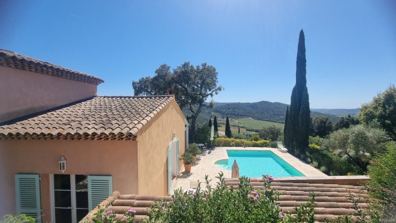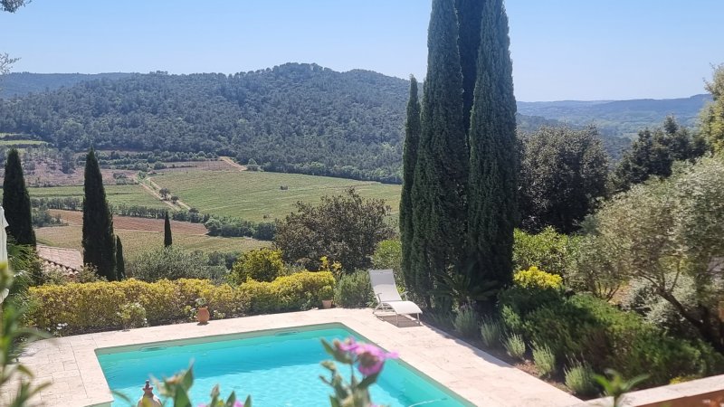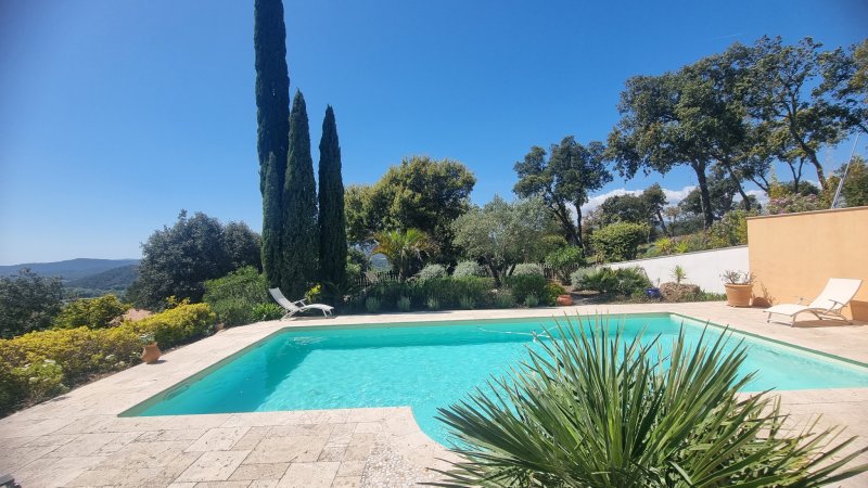 PIERREFEU DU VAR, en position dominante avec une magnifique vue sur la plaine, villa de plain-pied d'environ 125 m2 avec studio indépendant d'environ 25m2, une annexe d'environ 20 m2, piscine et terrasses, sur une parcelle d'environ 2 638 m2, au calme. Vous bénéficierez pour cette villa d'environ 125 m2 du confort d'une vie quotidienne de plain-pied, avec un vaste espace de vie d'environ 62 m2 exposée SUD-OUEST, tourné vers ses terrasses et sa piscine, composé par un salon/séjour équipé d'un poêle à pellets pour le cocooning, une cuisine semi-ouverte, un emplacement idéal pour un bureau ou un coin lecture face au patio. Le pôle nuit principal se compose de 2 chambres d'environ 17 m2 et 23 m2 chacune avec placard et sde privative, et donnant sur la terrasse. Jouxtant l'entrée, une dépendance complémentaire d'environ 20 m2 aménagée en chambre avec sa sde privative + un espace en mezzanine d'environ 6m2 . En complément, un studio situé au 1er étage d'environ 25m2, bénéficiant d'un accès indépendant, avec deux terrasses, idéal pour recevoir la famille, ou envisager un rendement locatif. Côté extérieur, un magnifique cadre verdoyant, complanté d'essences méditerrannéennes, abritant une belle piscine avec terrasse,d'où vous pourrez vous prélasser au soleil en admirant la vue. Grande zone de stationnement. Beaucoup de charme pour cette propriété entretenue avec soin. A 5 minutes des commerces et écoles. A environ 20 minutes des plages de Hyères et Toulon, communes disposant des gares TGV et aéroport. Les informations sur les risques auxquels est exposé ce bien sont disponibles sur le site Géorisques : www.georisques.gouv.fr