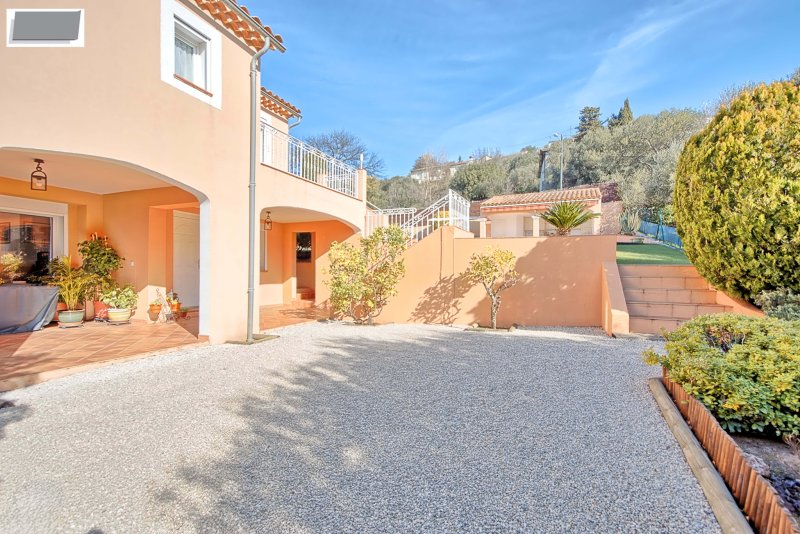 Pierrefeu, proche du centre, villa de 1960 rénovée entièrement en 2002 configurée en double habitation pouvant être reliée En rez de chaussée appartement T4 d'environ 80 m2 en excellent état, composé d'une entrée, cuisine US aménagée équipée, double séjour avec cheminée insert, 2 chambres avec rangement, salle d'eau, WC indépendant, terrasse de 9 m2 et terrasse plein sud de 16 m2. En rez de jardin appartement T3 d'environ 68 m2 en excellent état, composé d'une entrée, cuisine US aménagée équipée, séjour, 2 chambres avec rangement, salle d'eau, WC indépendant. le tout donnant sur terrasse couverte de 38 m2 et terrasse plein sud. Belle parcelle de jardin joliment arborée très bien entretenue, pool house avec cuisine d'été et terrasse donnant sur piscine traditionnelle. Beau garage de 38 m2 A voir rapidement