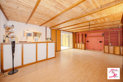 Au rez-de-jardin, vous profiterez de 150 m² , d'un salon TV , un bureau, une chambre, une grande salle d'eau avec W-C, une buanderie, un atelier.