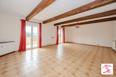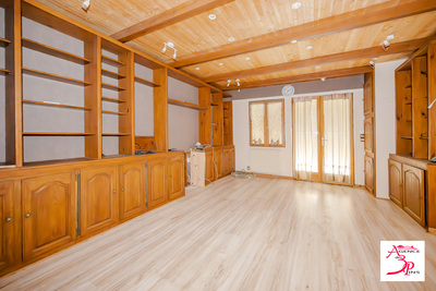 Au niveau supérieur, le séjour (37 m²) et la cuisine équipée (16 m²) donnent sur la terrasse permettant de profiter du panorama et d'une exposition sud, deux chambres (14 et 16 m²) une salle de bains avec douche, W-C et accès au jardin.