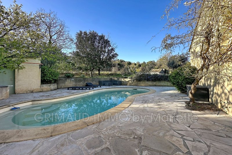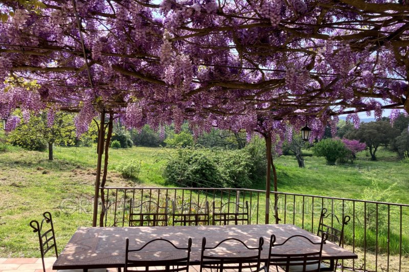 villa en campagne sur 1600m² de terrain avec sa piscine en forme libre se composant : entrée avec wc d'invités, séjour/ salle à manger avec poêle à bois, donnant sur belle terrasse avec vue sur les vignes, une belle cuisine ouverte et équipée, salle de jeux, 4 chambres avec une salle de douches et une salle de bains/douches+wc, garage/buanderie.