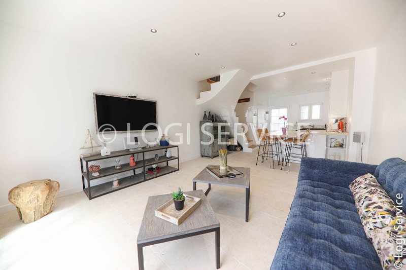 Dans un quartier sécurisé de Port Grimaud, une belle maison de pêcheur rénovée et contemporaine. Une entrée avec wc d'invités, une cuisine moderne ouverte, sur le séjour donnant sur la terrasse et l'amarrage de 14 x 4.28 mètres.