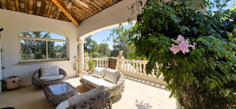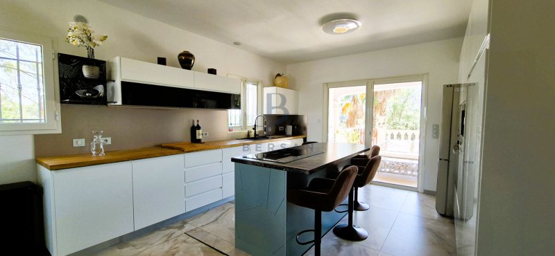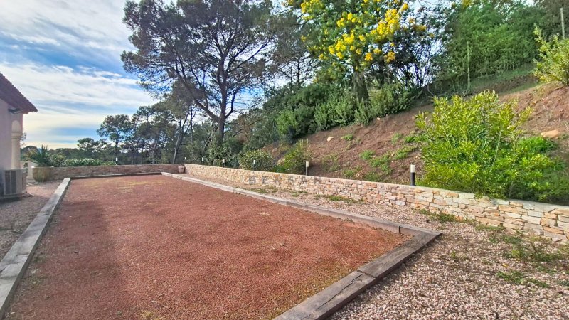 Cette villa de 2008 propose des prestations haut de gamme : climatisation réversible dans toutes les pièces, pompe à chaleur au sol (chaud et froid), cheminée, double vitrage, baies vitrées à galandage, piscine à débordement au sel, sécurisée et chauffée, vaste terrasse de 150 m², terrain de pétanque et portail électrique.