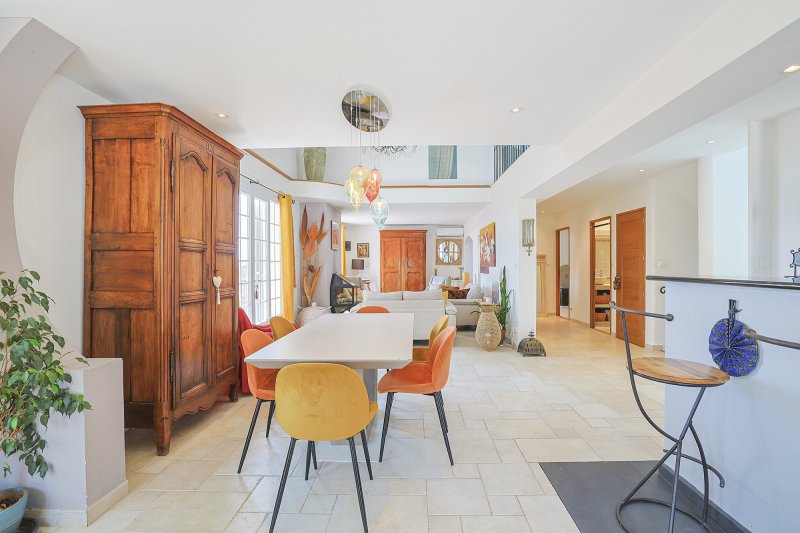 PUGET-VILLE : Nous sommes très fiers de pouvoir vous proposer cette superbe propriété, dans un cadre magnifique, sur terrain de 2 695 m2, avec une superbe vue dominante, imprenable et verdoyante. Vous y découvrirez cette très belle villa de 337 m2 avec des prestations Haut de Gamme, située en hauteur d'une colline. Au rez-de-chaussée, vous trouverez une agréable pièce de vie avec cuisine ouverte (65m2) et arrière-cuisine, le tout baigné de lumière grâce à ses nombreuses ouvertures exposées SUD donnant sur un balcon courant sur toute la longueur du séjour, mais aussi, une première chambre attenante à une salle d'eau / salle de bains avec WC. Au niveau supérieur, une pièce pallière offrant un magnifique vide sur séjour, une suite parentale (29m2) avec chambre, salle de bains, WC, une chambre aménagée en bureau et une salle TV pouvant faire office de troisième chambre à l'étage. Au niveau inférieur, accessible de l'extérieur comme de l'intérieur via un escalier interne, vous disposerez d'une immense suite parentale (45m2) comprenant chambre avec accès jardin, dressing, salle de bains et WC. Au même niveau, desservi par un dégagement avec de nombreux placards, se trouvent 3 autres chambres avec vue dégagée sur la plaine, bénéficiant elles aussi d'un accès direct à l'extérieur (21m2, 23m2, 23m2), et encore une salle de bains / salle d'eau et un WC indépendant. À l'extérieur, vous disposerez au total d'environ 165m2 de terrasses ombragées, d'une très belle piscine 10/5 de son Pool-Hous avec coursive, douche et WC à rénover. Le bien présente deux accès voitures distincts permettant le stationnement de quatre véhicules. Prestations haut de gamme : Poêle à bois modèle Diamant, Climatisations réversibles, Hauteur sous-plafond remarquable, Vastes volumes, Toiture 4 pans avec Charpente apparente, Ferronneries sur mesure, Portails motorisés, Aspiration centralisée. La propriété sera idéale pour accueillir votre famille. Mais aussi un projet de location saisonnière ou une maison d'hôte. Contactez JCG Immo ! PUGET-VILLE : We are very proud to offer you this superb property, in a beautiful setting, on a 2,695 m2 plot, with a superb dominant view, breathtaking and green. You will discover this beautiful villa of 337 m2 with high-end services, located on the top of a hill. On the ground floor, you will find a pleasant living room with open kitchen (65m 2) and back kitchen, all bathed in light thanks to its many openings exposed SOUTH overlooking a balcony running over the entire length of the stay, but also, a first room adjoining a bathroom/ bathroom with toilet. On the upper level, a room offering a magnificent empty living room, a master suite (29m 2) with bedroom, bathroom, toilet and a TV room that can be used as a bedroom. On the lower level, accessible from outside and inside via an internal staircase, you will have a huge master suite (45m 2) with bedroom with garden access, dressing room, bathroom and toilet. On the same level, served by a clearing with many closets, there are 3 other bedrooms with open views of the plain, also benefiting from direct access to the outside (21m 2, 23m 2, 23m 2), and a bathroom/ shower room and a separate toilet. Outside, ou will have a total of about 165m2 of shaded terraces, a beautiful 10/5 pool with its Pool-Hous with corridor, shower and toilet to renovate. The property has two separate car accesses allowing four vehicles to park. High-end services: Diamond model wood stove, reversible air conditioning, remarkable ceiling height, large volumes, 4-sided roof with exposed beams, custom ironwork, motorized gates, central suction. The property will be ideal to accommodate your family. But also a seasonal rental project or a guest house. Contact JCG Immo! SCIARRINO Maxime Carte de collaborateur no ADC 8306 2024 000 000 145 Immatriculé au RCS sous le no889 308 425 00012 No de police d'assurance 7953190/S17046246 (SPVIE)