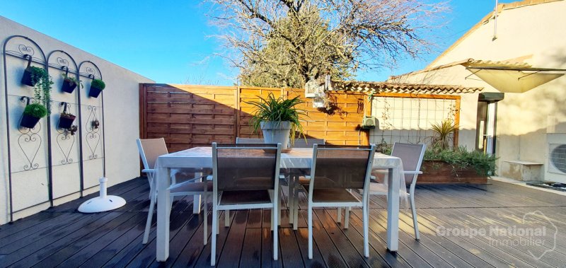 À l'extérieur, chaque espace a été imaginé pour profiter pleinement de la douceur de vivre. Plusieurs terrasses, aux expositions variées, permettent de savourer le soleil à toute heure de la journée. L'une d'elles dévoile une cuisine d'été meublée et équipée, parfaite pour prolonger les soirées d'été autour de repas partagés entre amis ou en famille.
