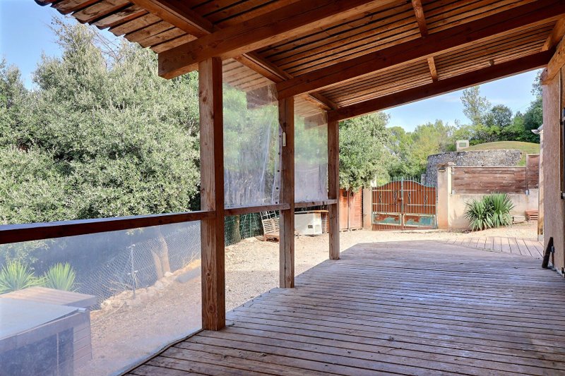 A l'extérieur, une clôture rigide et renforcée ceinture la maison, le reste de la parcelle boisée restant accessible . Le jardin se compose de plusieurs restanques dont l'aménagement se concrétisera selon vos envies.