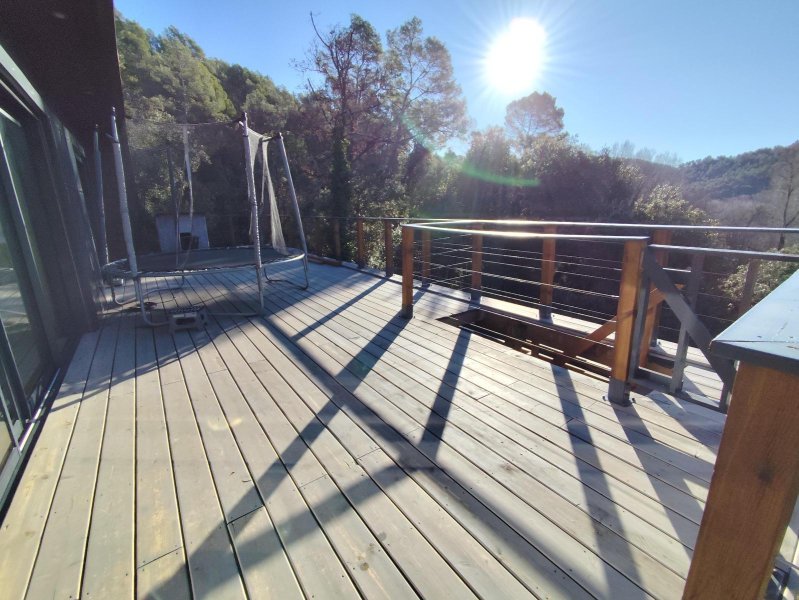 Elegante maison contemporaine en bois sur pilotis , vue dégagée, plein sud, piscine - Dans un environnement calme et privilégié, venez découvrir cette belle maison baignée de lumière en bois récente , édifiée sur pilotis, bénéficiant d'une exposition plein sud et d'une vue entièrement dégagée.La maison s'ouvre sur une superbe pièce de vie de 47m², lumineuse grâce a une grande baie vitrée, offrant une agréable continuité entre l'intérieur et l'extérieur.