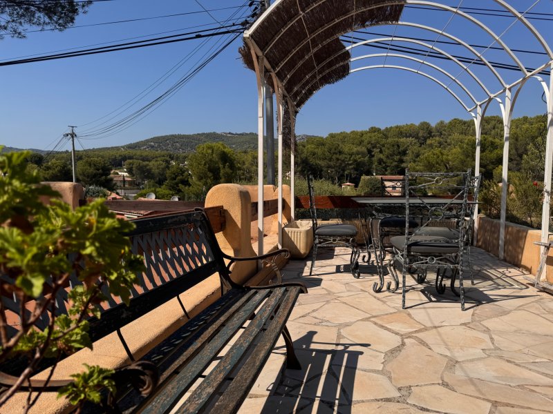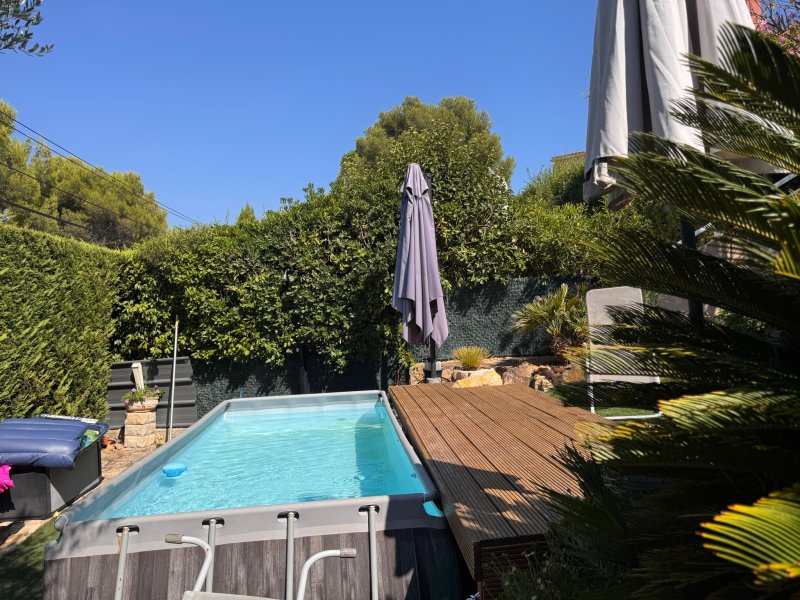 A proximité de la plage Doré Maison T4 provencale entièrement climatisée situé dans un lotissement sécurisé , d'une surface habitables de 88 m 2 se composant de plain pied d'un séjour salle à manger de 32 m2 avec placards, une cuisine aménagée donnant accès sur une veranda 5 m2 et une terrasse avec barbecue , à l'étage : deux chambres avec placards une salle d'eau rénovée avec toilettes, elle est édifiée sur un terrain de 420 m2 avec une piscine hors sol , restanques aménagées en terrasse, espace de repose , cabanon pour entreposer du matériel . Vous y trouverez également, une dépendance aménagée en chambre avec salle d'eau et toilettes. Garage 16 M2, possibilité de stationner deux véhicules. Dpe / C. Taxe foncière : 1765 EUR. Charges Annuelles de copropriété : 480 EUR CONTACTER AURELIE NOARI : 06 83 23 11 04 ( zero six quatre vingt trois vingt trois onze zero quatre ) EMAIL : aurelie.noari@acor.immo