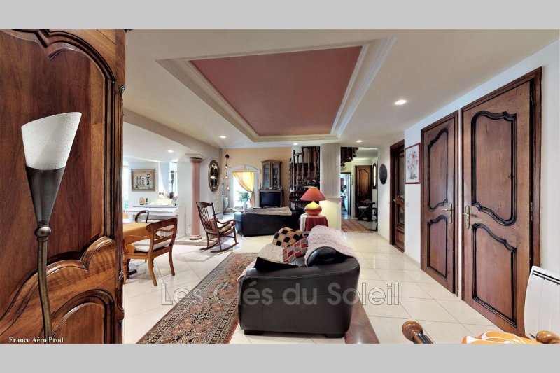 Achetez une magnifique maison individuelle aux notes bien méditerranéennes de 226m² située à Sanary-sur-Mer ! Exposée sud, cette demeure de luxe construite en 1980 sur deux niveaux est en excellent état intérieur et présente un terrain de 893m². Avec un spacieux séjour de 85m² avec cheminée, une cuisine indépendante aménagée, quatre chambres (dont trois en RDC), trois salles de bain et trois toilettes, tout le confort est assuré. Vous disposerez également d'une cave, de plusieurs terrasses, d'un boulodrome, cinq places de parking et d'un garage.