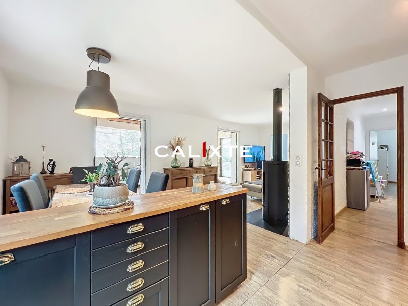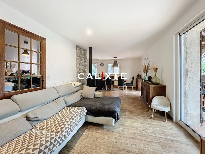 EXCLUSIVITÉ CALIXTE IMMOBILIER 3,95% SEILLANS, à 2 pas du village, dans un secteur résidentiel et facile d'accès, Calixte Immobilier propose à la vente cette maison de plain pied de type 3 pièces (2 chambres) avec garage indépendant sur un terrain de 1273 m2 exposé plein sud. Rénovée en 2015 avec toiture refaite entièrement en 2020, elle bénéficie de prestations modernes et confortables. Double vitrage, isolation, poêle à bois, sanitaires, electricité...sont les principaux travaux réalisés avec soins par les propriétaires actuels. Spacieuse entrée avec placard, ouverture sur séjour-cuisine équipée de 34 m4 avec poêle à bois, de larges baies à galandage plein sud donnant sur une belle terrasse avec barbecue et l'accès au jardin. Buanderie avec rangements et branchements pour machine à laver et sèche-linge. Chambre parentale avec salle de douche, une autre chambre indépendante et une salle de bains séparée, toilettes séparés. A l'extérieur elle possède de belles terrasse, dont une couverte devant séjour avec barbecue, du stationnement pour plusieurs véhicules, un garage indépendant de 17 m2, le jardin est ombragé et sans vis à vis dans un environnement boisé. La fosse septique est à rénover. Taxe foncière : 1400 Honoraires à la charge du vendeur. Classe énergie D, Classe climat B Montant moyen estimé des dépenses annuelles d'énergie pour un usage standard, établi à partir des prix de l'énergie de l'année 2021 : entre 1130.00 et 1570.00 . Les informations sur les risques auxquels ce bien est exposé sont disponibles sur le site Géorisques : georisques.gouv.fr.