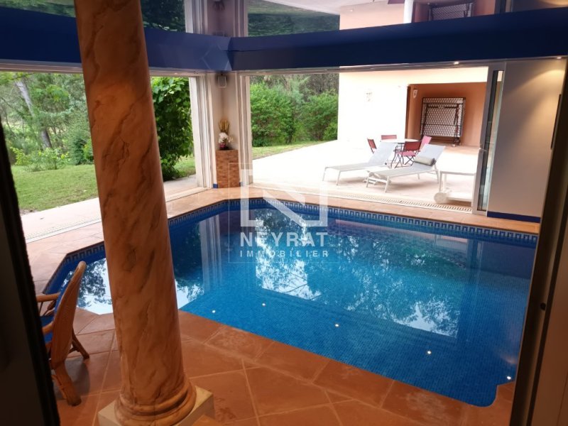 4 chambres, dont une de plain pied, belles pièces de vie, piscine intérieure, jardin superbement complanté 6000 m2, immense garage. Construction de grande qualité, parasismique, immenses terrasses . Un joli coin de Provence à découvrir !