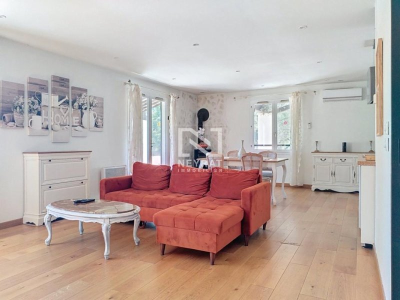 Villa composée en rez-de-chaussée, d'un vaste séjour avec cuisine ouverte donnant sur la terrasse, trois chambres ( deux passantes), un dressing, une salle d'eau, une salle de bain, deux WC