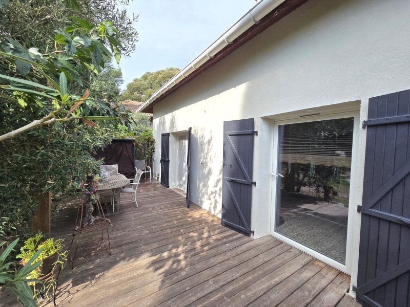 SIX FOURS LES PLAGES, dans secteur très recherché de JAUMARD... Nouveauté ACOR'IMMO ! Adorable maison T3 de plain-pied dans une petite copropriété de 3 logements comprenant une entrée dans pièce de vie avec cuisine équipée américaine de 29 m2, 2 chambres, buanderie dressing, salle d'eau, W.C. Terrasse privative de 27 m2, 2 places de parking privatives, garage partagé pour rangement ou moto. L'ensemble en parfait état, entièrement rénové ! Climatisation réversible, fibre, poêle à granules... A visiter rapidement ! DPE : C - Contact direct Stéphane COSTE 06.58.04.45.78