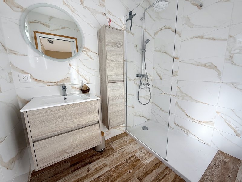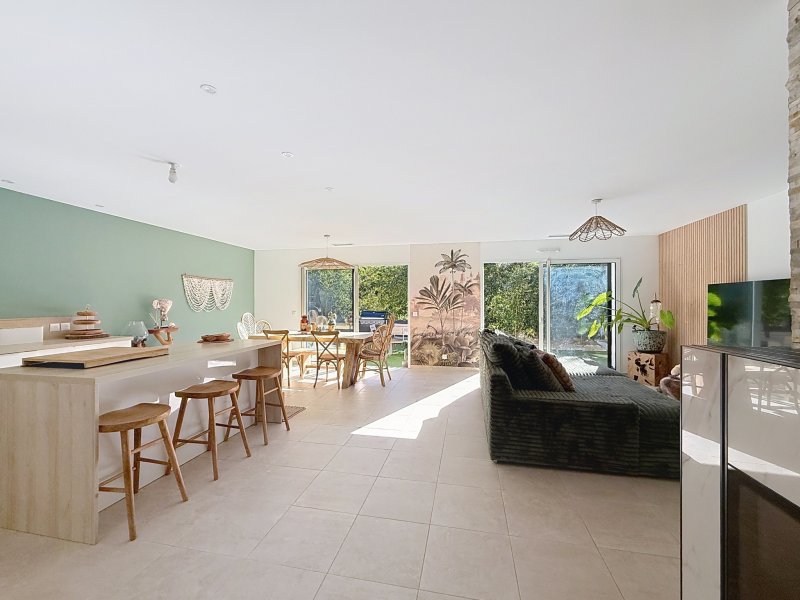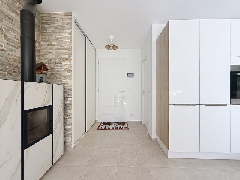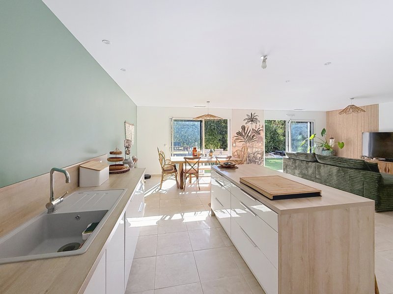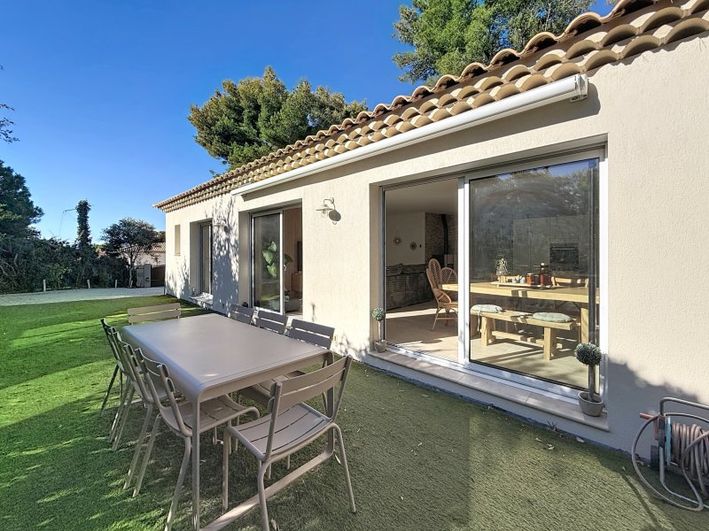 Sur les hauteurs du Brusc dans un environnement calme, nous vous proposons à la vente une villa de plain-pied hors lotissement, récente année 2024, sur un terrain de 633 m2. Dès l'entrée vous serez séduit par la décoration et la qualité des matériaux. La cuisine entièrement équipée (Four, refrigérateur congélateur, lave-vaisselle, induction avec hotte intégrée) s'ouvre sur le séjour lumineux coté sud, une buanderie et un WC visiteur complètent la partie jour. L'espace nuit comprend une suite parentale avec dressing et salle de douche, une salle de bain avec WC et 2 chambres. Prestations : climatisation gainable, poêle haut de gamme mixte bois et granules, baies en aluminium et fenêtres en PVC double vitrage, sols en carrelage, portail électrique ... Plage et port du Brusc à moins de 20 minutes à pieds! Apercu mer du terrain. Cette maison très agréable et chaleureuse réunie tout le confort actuel pour en faire sa résidence principale, une visite s'impose!