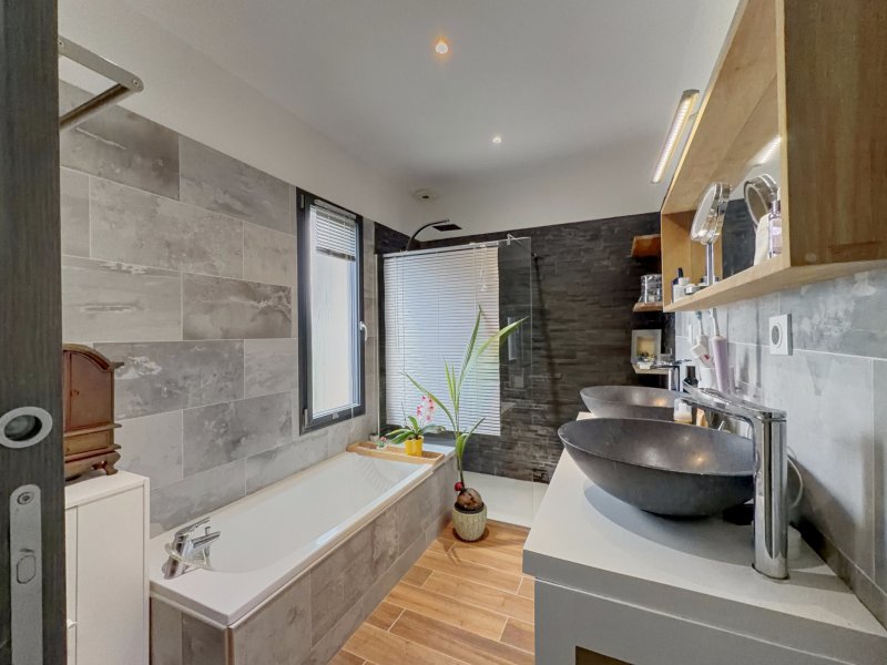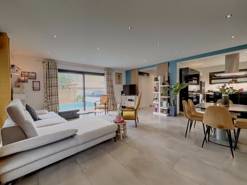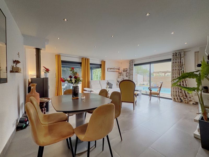 A 10 minutes à pied de la plage des Lones, venez découvrir cette villa T4 indépendante récente (2013 / DPE : A) de 100m2 hab. sur 383m2 de terrain clos. Elle se compose au rez-de-chaussée d'un hall d'entrée avec placard, wc 'invités' et séjour avec cuisine ouverte entièrement équipée de 41m2 ouvrant par de larges baies vitrées sur une terrasse abritée d'une pergola bioclimatique et sur la piscine. A l'étage : dégagement, 3 chambres dont une avec dressing, salle de bains et wc indépendant. Un appenti avec petite cave en dessous, un puits et 4 places de stationnement complètent l'ensemble.