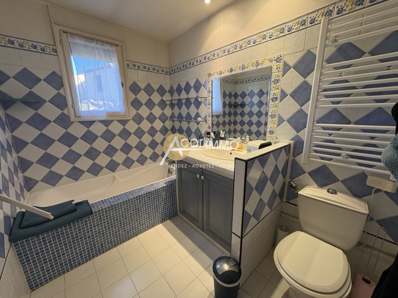 Dans un quartier calme, dominant ACOR IMMO vous propose une jolie maison composée d' une lumineuse pièce de vie avec cuisine américaine , cheminée , une suite parentale avec douche et wc, rangements A l'étage deux chambres vue mer, salle de bains et wc TERRASSE et JARDIN-STATIONNEMENT sur le terrain-RARE SUR LE SECTEUR A 5 MN de la Plage de BONNEGRACE à Six fours, axe routiers à proximités.. Contact zéro six, vingt deux, trente neuf, vingt et un, quatre vingt neuf