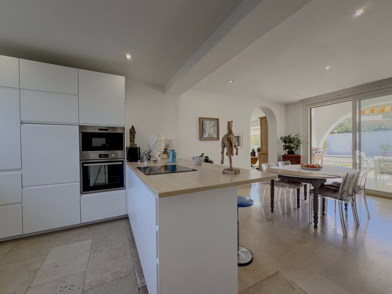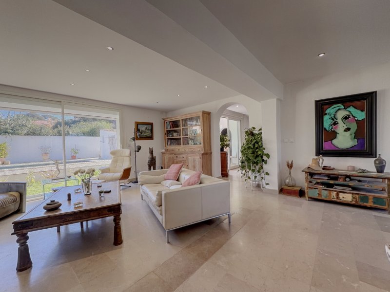 Idéalement située au coeur du Brusc, cette charmante maison de plain-pied de 106m2hab. bénéficie d'un emplacement particulièrement agréable permettant de profiter pleinement de la vie de village et des commodités à pied, dans un environnement calme. Édifiée sur un joli terrain plat de 746m2, cette maison ancienne pleine de charme a fait l'objet d'une rénovation et propose un cadre de vie lumineux et convivial avec un beau séjour / salon prolongé par une spacieuse cuisine ouverte, l'ensemble s'ouvrant harmonieusement sur la terrasse et l'espace piscine. La partie nuit se compose actuellement de deux chambres, d'une salle de bain et d'un WC. Un garage et une buanderie complète l'ensemble. La configuration de la maison offre par ailleurs un potentiel d'évolution intéressant, permettant aisément la création d'une troisième chambre accompagnée d'une seconde salle d'eau si nécessaire. Une maison pleine de charme offrant un cadre de vie recherché, entre confort et proximité du bord de mer.