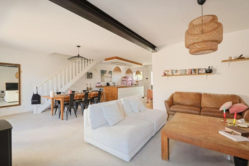 Située à seulement 800 mètres des plages de Bonnegrâce, cette maison T5 de 145 m² (dont 20 m² de garage aménagé) offre un équilibre harmonieux entre volumes, lumière et confort contemporain.