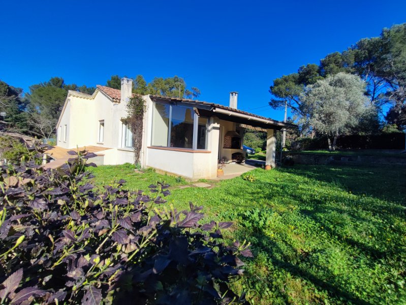 RARE et Nouveauté ACOR IMMO !! SIX FOURS LES PLAGES, dans quartier très calme et recherché... Belle construction T5 de plain-pied comprenant une entrée, un séjour-salon de 47 m2 avec cheminée insert donnant sur une magnifique terrasse couverte, une cuisine de 12 m2, 3 belles chambres, salle de bains + douche, W.C. séparés. En dessous, un sous-sol partiel avec rangements, buanderie et un grand atelier ! L'ensemble sur un terrain de 800 m2 avec un puits. Climatisation dans le séjour, portail électrique, double vitrage, fibre optique, fosse septique... tripe exposition ! Quelques travaux de rafraîchissement à prévoir... DPE : D - Contacter directement Stéphane COSTE au 06.58.04.45.78