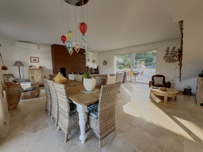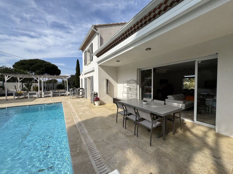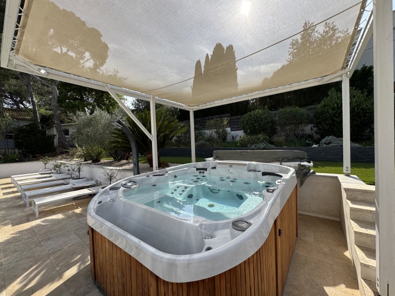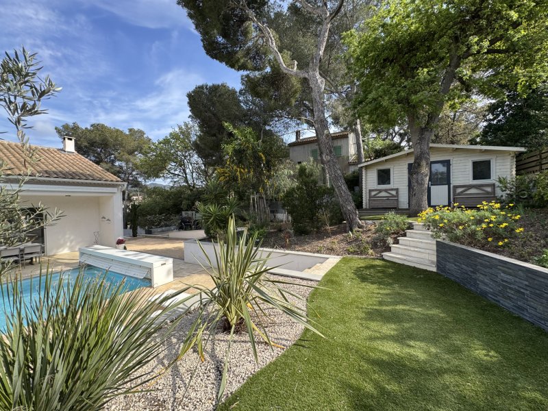 Située dans un quartier résidentiel prisé du Brusc, à proximité immédiate des commerces et des plages, cette superbe villa entièrement rénovée vous séduira par la qualité de ses prestations et ses volumes généreux. La maison offre un grand séjour lumineux et traversant ouvrant sur l'extérieur par des baies vitrées à galandage. La cuisine équipée moderne et fonctionnelle dispose d'une arrière cuisine attenante. Au RDC vous trouverez également une suite parentale avec SDE ainsi que des WC indépendants pour les visiteurs. A l'étage, l'espace nuit comprend deux autres suites avec SDE et un dortoir bénéficiant de sa salle d'eau privative, idéal pour accueillir famille et amis. Sous la terrasse de la maison se trouve une zone de stockage, pratique pour y ranger de l'outillage et des effets personnels. Les extérieurs sont à la hauteur du bien : magnifique piscine sécurisée par un volet roulant, jaccuzzi 6 places, terrain de pétanque, le tout sur une parcelle de 1279 m2 entièrement clôturée, équipée d'un portail automatique et d'un visiophone. Un bien rare sur le secteur alliant confort, modernité et qualité de vie.