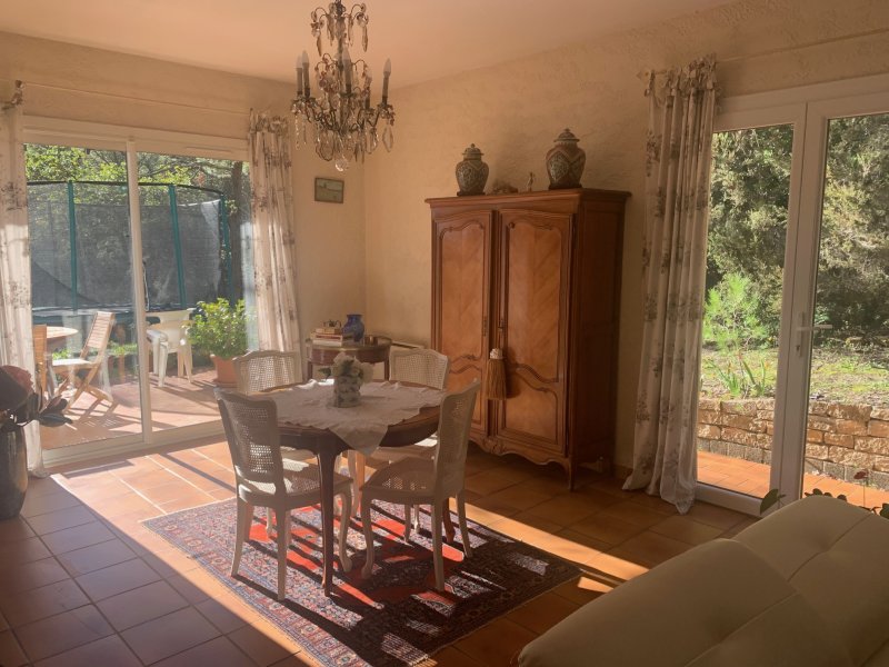 - SIX FOURS LE BRUSC - En campagne, au calme absolu et sans aucun vis à vis.... Environnement exceptionnel pour cette propriété principalement de plain-pied au charme provençal des années 80. Les pièces de vie s'ouvrent sur une terrasse avec vue dominante et dégagée regardant le parc arboré. Séjour-salon avec cheminée et cuisine équipée. 3 chambres en rdc dont une avec salle d'eau. Salle de bains et grand espace buanderie/lingerie. A l'étage 4ème chambre avec point d'eau. Grand garage en sous-sol de 60 m2 pour multiples usages (salle de jeux/sport, chambre d'amis ...). Terrain exceptionnel en espace naturel protégé, clos et arboré de 5000 m2 avec piscine en bois 4.5x9.5.