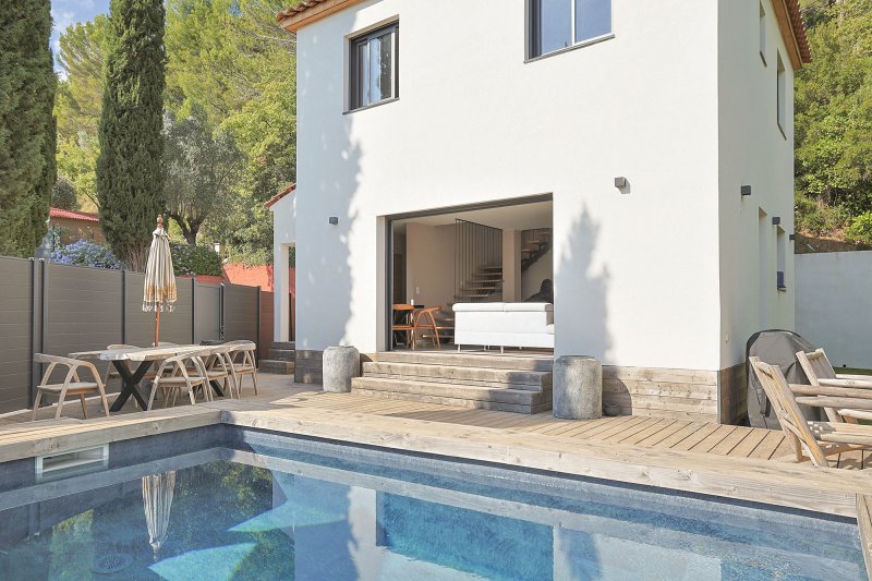 Sollies pont sur les hauteurs nichée dans un environnement au calme trés belle vill arécente de 2023 exposée au sud offrant une tres belle vue dégagée au calme en impasse . Elle se compose d'une spacieuse pièce de vie de 36 m2 avec cuisine us et baigné par la lumière avec de grandes baies en galandage ouvrant sur une terrasse en bois avec une pisicne hors sol de 10 m2 sans aucun vis à vis . Cette villa bénéficie d'une suite parentale de 17 m2 en rez de chaussé avec salle de bains privative . Wc séparé , buanderie . A l'étage un espace bureau de 8 m2 pouvant accueillir une 3eme chambre et une autre chambre de 23 m2 abritant une salle d'eau et un dressing . Terrain de 788 m2 qui abrite de nombreux parking extérieur , le reste du terrain est sans entretien avec du gazon synthétique ou du bois . Un vrai coup de coeur pour les amateurs de confort et de tranquilité .
