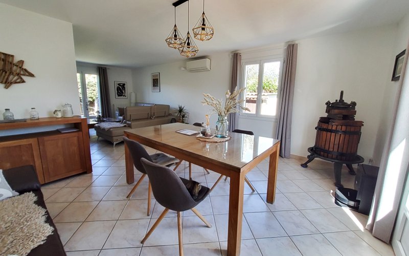 SOLLIES-PONT, située dans un quartier calme et résidentiel, cette agréable villa T4 de plain-pied offre environ 94 m2 habitables sur un terrain de 718 m2. Dès l'entrée, vous apprécierez le placard intégré, le vaste salon-séjour lumineux, la cuisine aménagée, le cellier et un dégagement menant à trois chambres dont une avec placard, une salle de bains et des toilettes séparées. Pour plus de praticité, la maison dispose d'un garage attenant d'environ 18,50 m2 avec espace buanderie, ainsi que d'un sous-sol total de 94 m2 comprenant trois grandes piéces brutes et une salle d'eau avec wc. À l'extérieur, vous profiterez d'une terrasse avec coin barbecue, d'un abri de jardin, d'un double carport et de nombreuses places de stationnement. Cette propriété confortable est équipée de la climatisation réversible, de l'eau de ville et d'un forage. Située au calme, à proximité du centre et des commodités A découvrir rapidement.... Les informations sur les risques auxquels est exposé ce bien sont disponibles sur le site Géorisques : www.georisques.gouv.fr