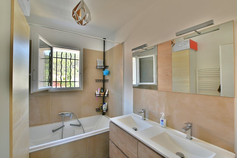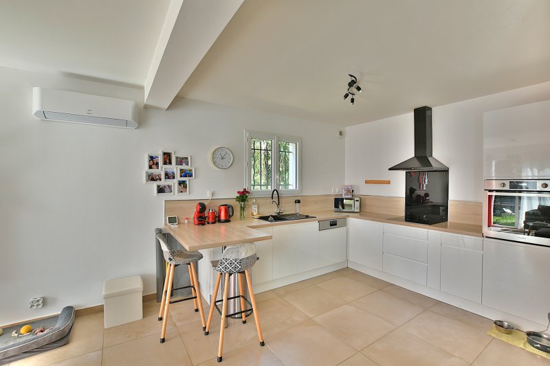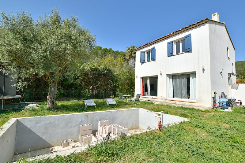 Quartier calme, à proximité des collines et à l'abri des nuisances sonores, maison récente édifiée en 2018. Elle totalise 94m2 habitables comprenant un séjour / cuisine américaine de 38,5m2, 3 chambres à l'étage, 2 WC, cellier, salle de bains. Climatisation réversible dans toutes les pièces. DPE : A Le terrain plat de 333m2 comporte une piscine maçonnée en cours de construction ayant fait l'objet d'une déclaration préalable. Les travaux de finitions resteront à terminer. Garantie dommage d'ouvrage et décennale en cours sur la villa.
