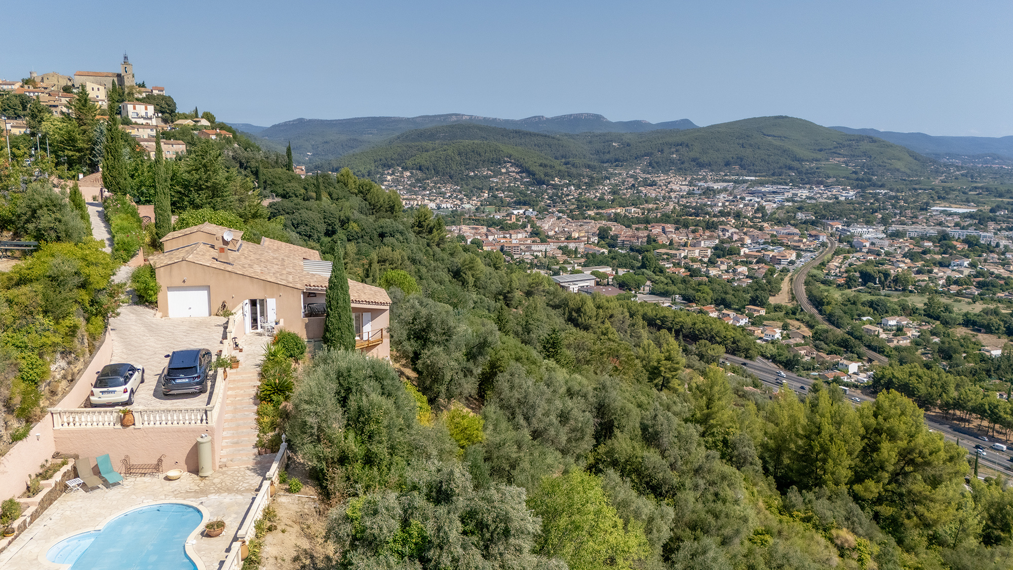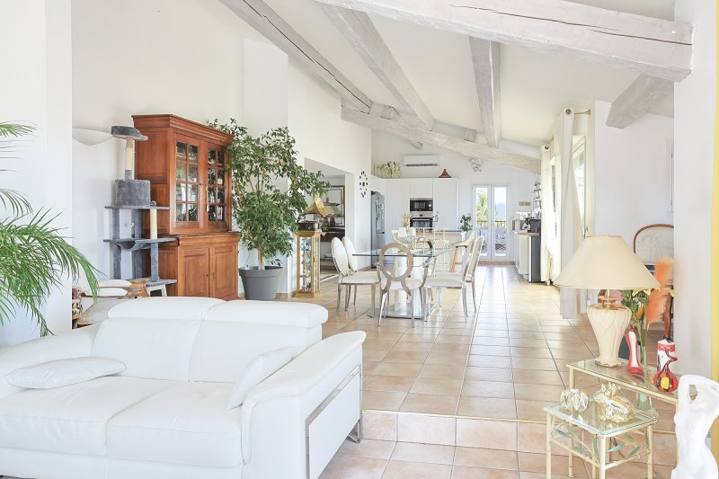 SOLLIES VILLE, JCG Immo est heureux de vous proposer en exclusivité et nulle part ailleurs, cette grande villa familiale de 190 m2 habitables avec piscine, pool house et GARAGE avec une fantastique vue dominante imprenable à 180o qui domine toute la plaine des sollies ! Cette propriété de construction traditionnelle a été édifiée en 1998 sur une parcelle de 7952 m2 en zone naturelle avec toutes les autorisations d'urbanismes nécessaires et idéalement placée avec toutes les commodités du village accessibles à pied ! La villa se compose de la façon suivante: - A l'étage : une grande entrée - Au rez-de-chaussée : Une belle pièce de vie de 66 m2 avec cuisine ouverte récente qui donne sur 2 grandes terrasses (dont une avec une partie véranda), et un WC indépendant - Au rez-de-jardin : 3 chambres (26m2 avec salle de bain attenante, 19 m2 double exposition, 18 m2 avec sa terrasse indépendante), 1 salle d'eau et 1 WC indépendant. Cerise sur le gâteau : A ce même niveau vous trouverez une remise d'environ 19 m2 idéal stockage/ rangement. - A l'extérieur : Une piscine traditionnelle de forme libre avec terrasse/plage et poolhouse, une aire de stationnement permettant de garer 4 voitures dans la propriété et un garage d'environ 30 m2 avec accès direct à la villa complète le bien. PRESTATIONS : Double vitrage intégral, Baies et fenêtres PVC, Volets bois, Plancher chauffant, Climatisation réversible dans toute la villa, grande cuisine aménagée et équipée récente, chaudière au fioul, eau sanitaire par cumulus électrique, eau de ville, assainissement par fosse septique. PERFORMANCES : EXCELLENT DPE = B ! Impôt fonciers 2024 : 3500 EUR NOTRE AVIS : Nous avons été sensible à la qualité du bâti et aux volumes, à l'excellent état général, à la performance énergétique (DPE=B) ce qui en fait une des maisons les moins énergivores sur le marché Lionel Lancry Carte de collaborateur noADC 8306 2025 0000 000 624 Enregistré au registre du commerce no 914 765 458 RSAC de Toulon No de police d'assurance Sérénis Assurances Police No VD 7.000.002/005808/ACI23605