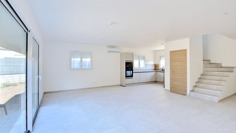 Dès l'entrée, vous serez séduit par un séjour baigné de lumière, entièrement climatisé, avec cuisine ouverte pour un espace de vie convivial et contemporain. Le rez-de-chaussée accueille également un WC indépendant ainsi qu'un garage attenant et isolé, facilement aménageable selon vos besoins (buanderie, bureau, atelier?).