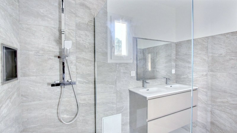 À l'étage, vous trouverez trois belles chambres de 14 m², toutes climatisées, offrant un confort optimal été comme hiver. Une salle d'eau moderne et un second WC indépendant complètent ce niveau parfaitement agencé. La maison est équipée d'une climatisation réversible dans chaque pièce et d'un ballon thermodynamique assurant une efficacité énergétique remarquable.