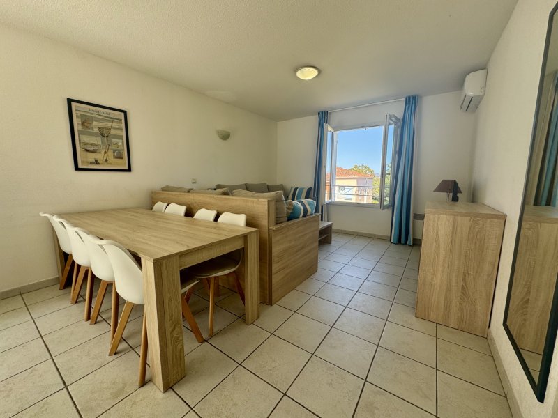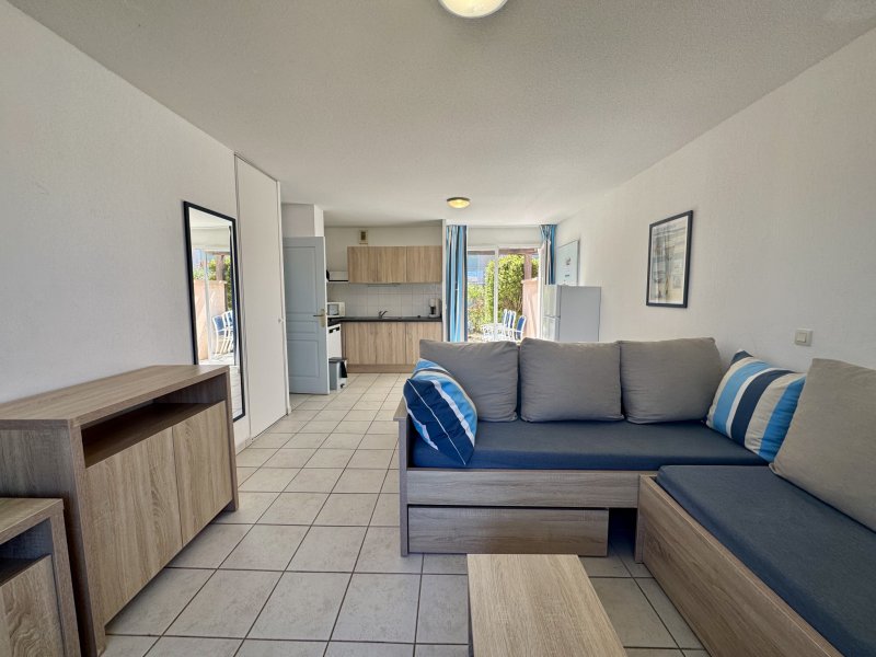 ***SOUS OFFRE DANS NOTRE AGENCE*** Dans une résidence de tourisme, sécurisée et avec piscine, agréable maisonnette de 55m2 environ se composant comme suit : salon climatisé (2025), cuisine ouverte équipée avec espace repas, 2 chambres avec placards, une chambre cabine, une salle de d'eau, toilettes séparées. Jardinet privatif d'environ 57m2. Une place de parking aérien et un garage en sous-sol viennent compléter ce bien. Double vitrage. Eau et électricité inclus dans les charges de copropriété (458EUR/mois). Bien libre de toute location ou occupation à compter du 30/09/2025. Les informations sur les risques auxquels ce bien est exposé sont disponibles sur le site Géorisques : www.georisques.gouv.fr