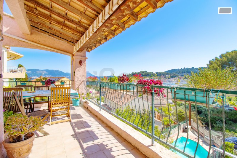 Située à Saint-Mandrier-sur-Mer, cette villa de style méditerranéen bénéficie d'un emplacement privilégié offrant une vue mer imprenable sur la rade, sans aucun vis-à-vis. Exposée Sud-Est, elle profite d'une luminosité optimale tout au long de la journée, dans un environnement calme et particulièrement recherché. Édifiée sur un terrain d'environ 640 m2, la propriété dispose d'un agréable jardin arboré d'environ 500 m2, aménagé en restanques, ainsi que d'une belle piscine creusée. Celle-ci est sécurisée par des barrières amovibles en été et une bâche à barres en hiver. Une spacieuse terrasse permet de profiter pleinement du panorama et du cadre environnant. La maison se compose de trois chambres, dont une suite parentale ouvrant sur une loggia avec une vue dégagée sur la rade, ainsi que d'un bureau idéal pour le télétravail. Le séjour lumineux, ouvert sur la salle à manger, est agrémenté d'une cheminée avec insert, tandis que la cuisine est indépendante. Plusieurs pièces, dont le séjour et certaines chambres, sont climatisées, assurant un confort optimal en toute saison. La villa est idéalement située à seulement 100 mètres à pied du port et de la navette maritime, et bénéficie de deux accès en voiture, un atout rare sur le secteur. Les prestations techniques sont également au rendez-vous : menuiseries récentes en double vitrage PVC avec volets aluminium, connexion à la fibre optique, et classement énergétique C (DPE 2026). La propriété est équipée de panneaux solaires avec contrat de revente d'électricité à EDF, transférable au nouveau propriétaire. Un grand garage d'environ 25 m2, une cave ainsi qu'un vide sanitaire complètent l'ensemble. Cette propriété offre un cadre de vie rare, alliant confort, fonctionnalité et emplacement privilégié, idéale en résidence principale comme secondaire.