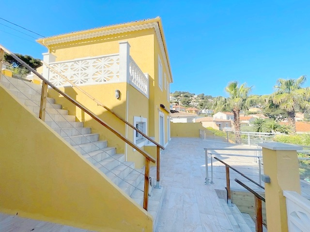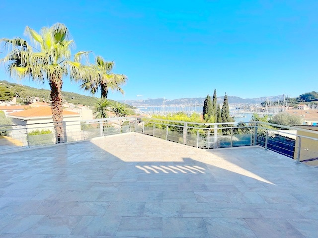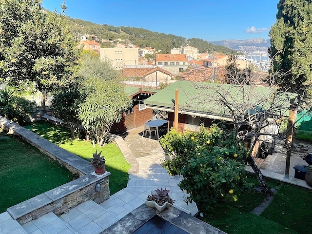 Dominant la rade de Saint-Mandrier sur Mer et de Toulon à 180 o , au calme , belle propriété de standing de 140 m2 édifiée sur un terrain en restanques de 572 m2 . Bénificiant d'une vue mer panoramique spectaculaire de toutes les pièces de la villa en passant par les terrasses ombragées ainsi que les spacieuses pièces de vie . De plus son emplacement , tout en etant en retrait du village , elle bénéficie de tous les avantages du port , des plages , des commerces et ecoles , des bus et du bateau à 5 mn à pied . La propriété est étagée en 2 niveaux , offrant un confortable salon-séjour de plus de 40 m2 avec une cheminée , une cuisine ouverte aménagée et équipée , de 6 chambres et de 4 salles d'eau . Vous profiterez d'une magnifique terrasse de plus de 90 m2 entièrement aménagée et équipée avec cuisine d'été , d'un appartement T2 indépendant de plus de 30 m2 tout équipé ainsi que deux chalets en bois indépendants entièrement équipés et aménagés complèteront les prestations de cette villa de standing . La vue spectaculaire , l'environnement , les prestations de cette propriété de standing seront à la hauteur de vos attentes ! A saisir rapidement !