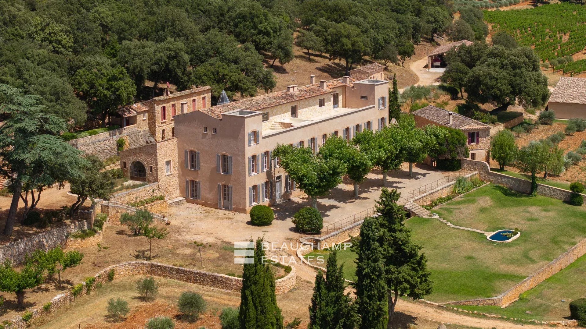 Au cœur du Centre Var, ce domaine viticole avec château de 1 575 m² s’étend sur un vaste terrain d’environ 168 hectares mêlant terres agricoles, forêts et vignobles.
