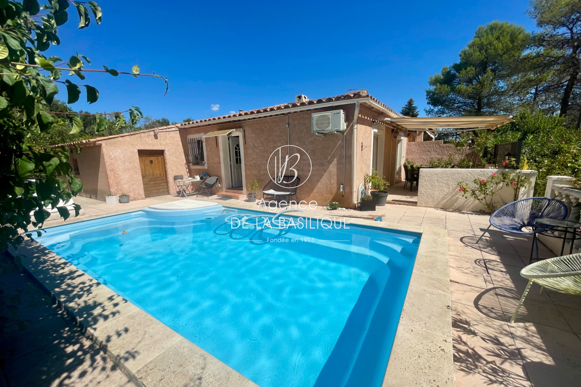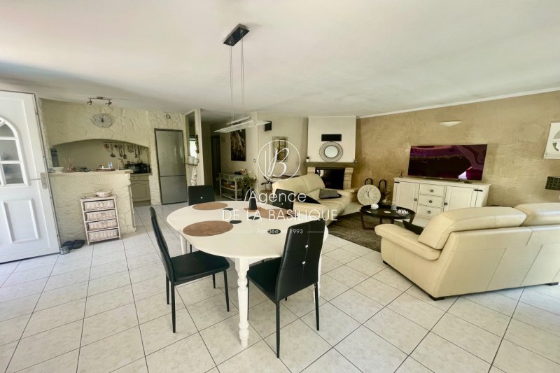 ACHAT-VENTE 83470 SAINT MAXIMIN LA SAINTE BAUME Jolie villa de plain-pied proche des écoles 82 m² habitables Située dans un quartier recherché, à proximité immédiate des écoles, cette charmante villa de plain-pied construite en 1997 offre une surface habitable d'environ 82 m² sur un terrain agréable. Elle se compose d'un vaste salon-séjour lumineux avec cuisine ouverte entièrement équipée. Vous y trouverez également deux chambres, une salle d'eau récemment rénovée et un WC indépendant. Attenant à la maison, une buanderie et un cellier viennent compléter l'ensemble. À l'extérieur, profitez d'une piscine au chlore de 5 x 2,80 m, ainsi que de deux terrasses orientées de part et d'autre de la maison. Prestations complémentaires : menuiseries PVC double vitrage, climatisation réversible, cheminée avec insert,plusieurs places de stationnement. Une maison fonctionnelle et agréable à vivre, à découvrir sans tarder !